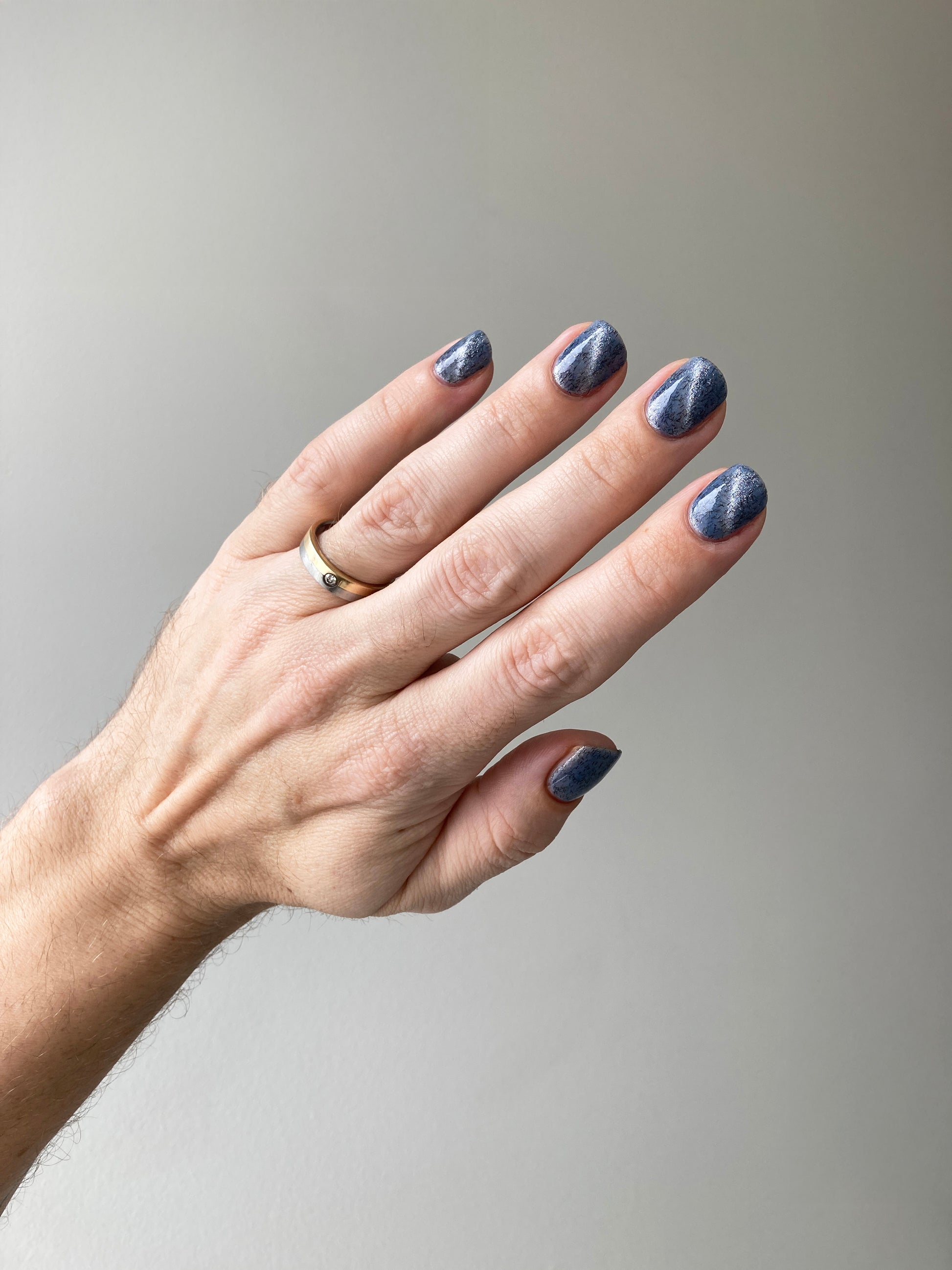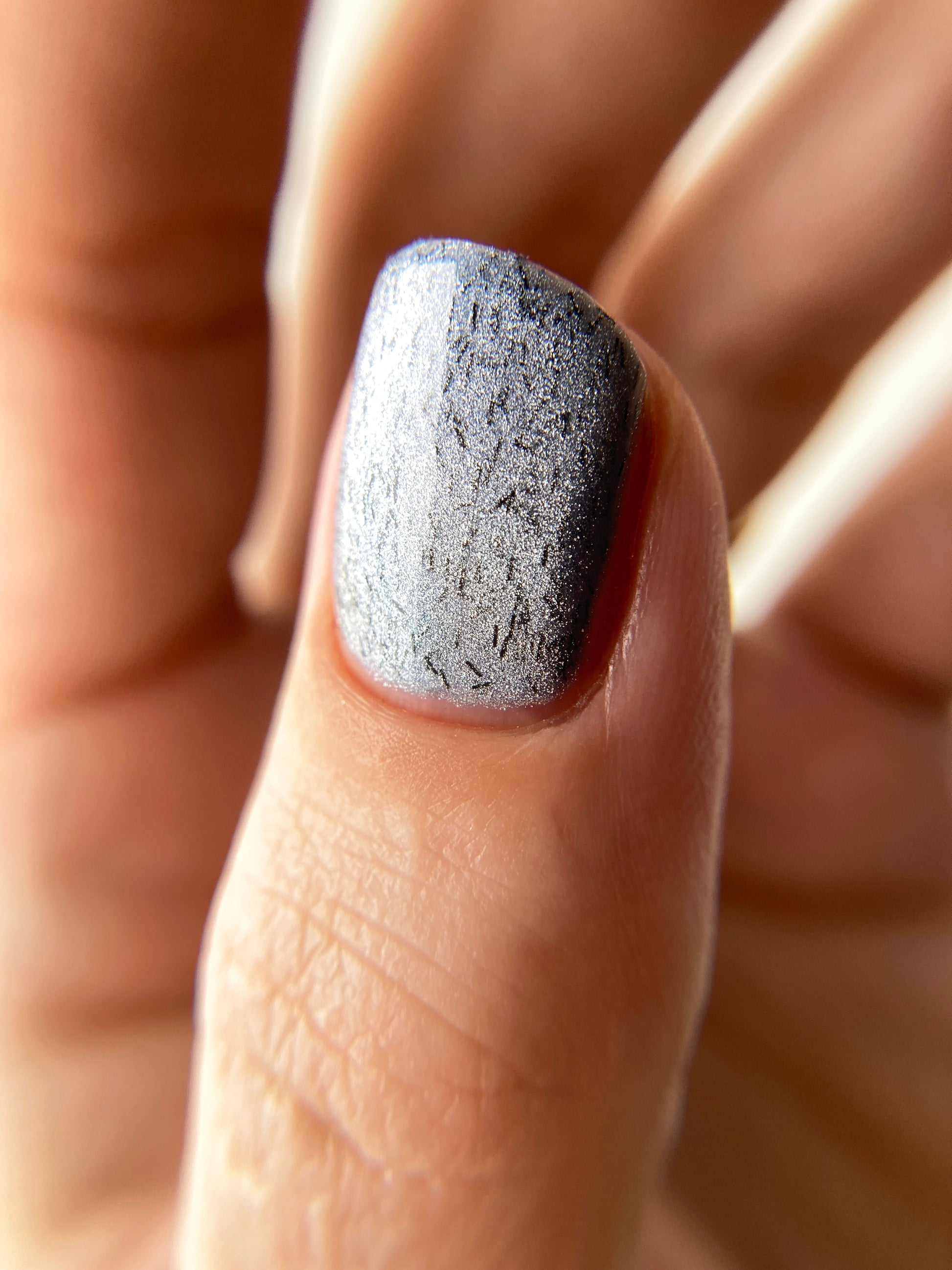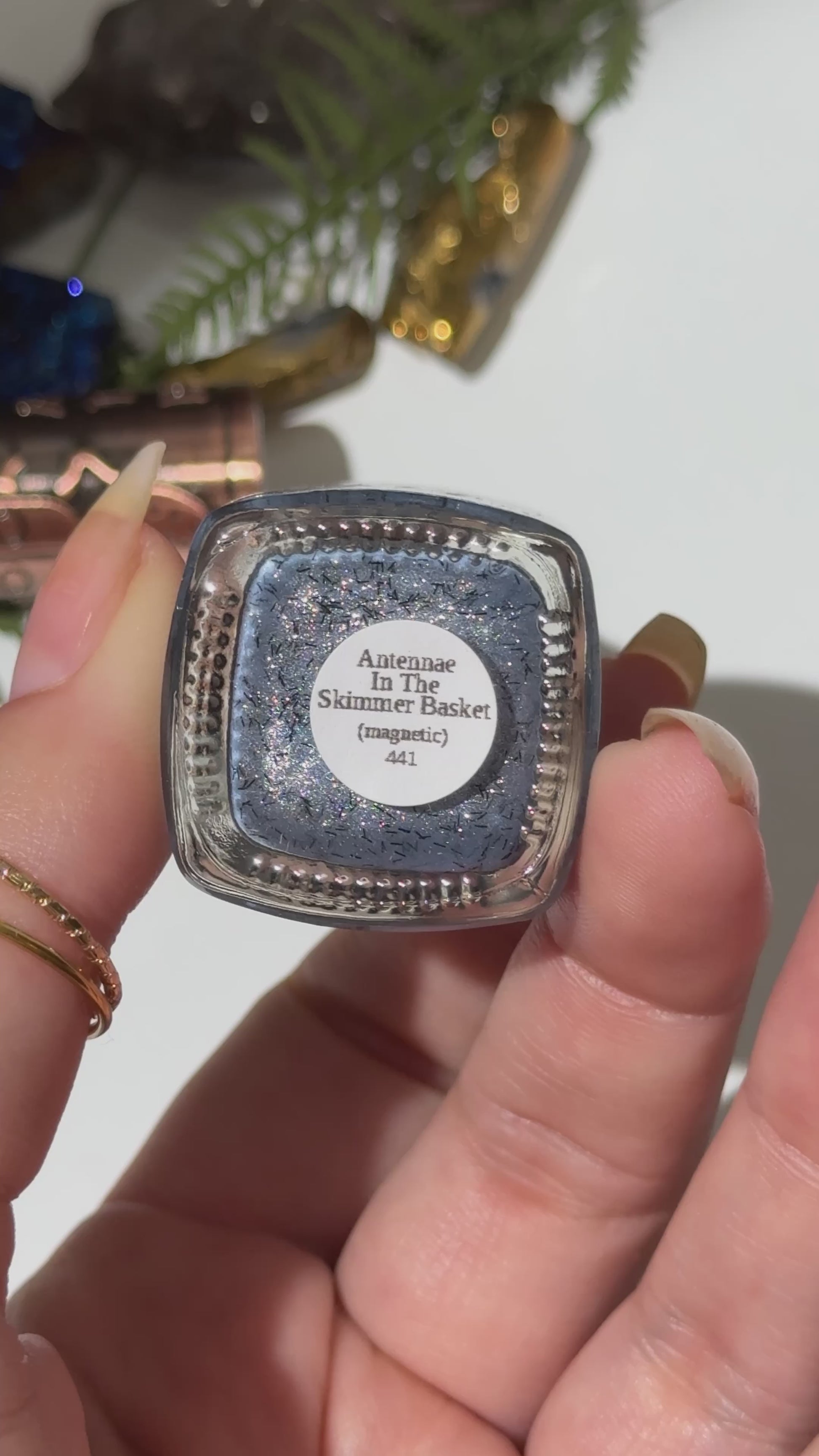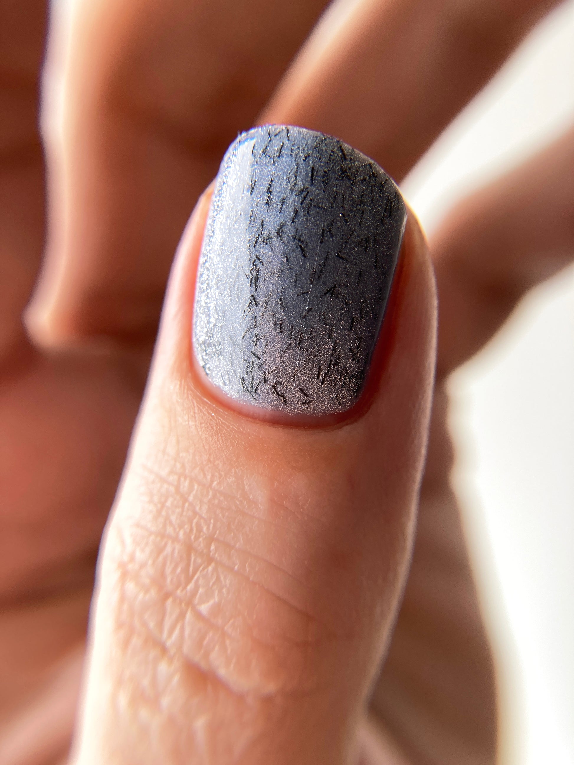 Application: Apply base coat. Add 1-3 coats of magnetic polish for desired base color opacity. On the final coat hold a neodymium magnet across the nail hovering right above to the wet polish immediately after application on each finger for 5-10 seconds. The polish will ONLY react to the magnet when wet. Follow by a top coat. Application guide here.