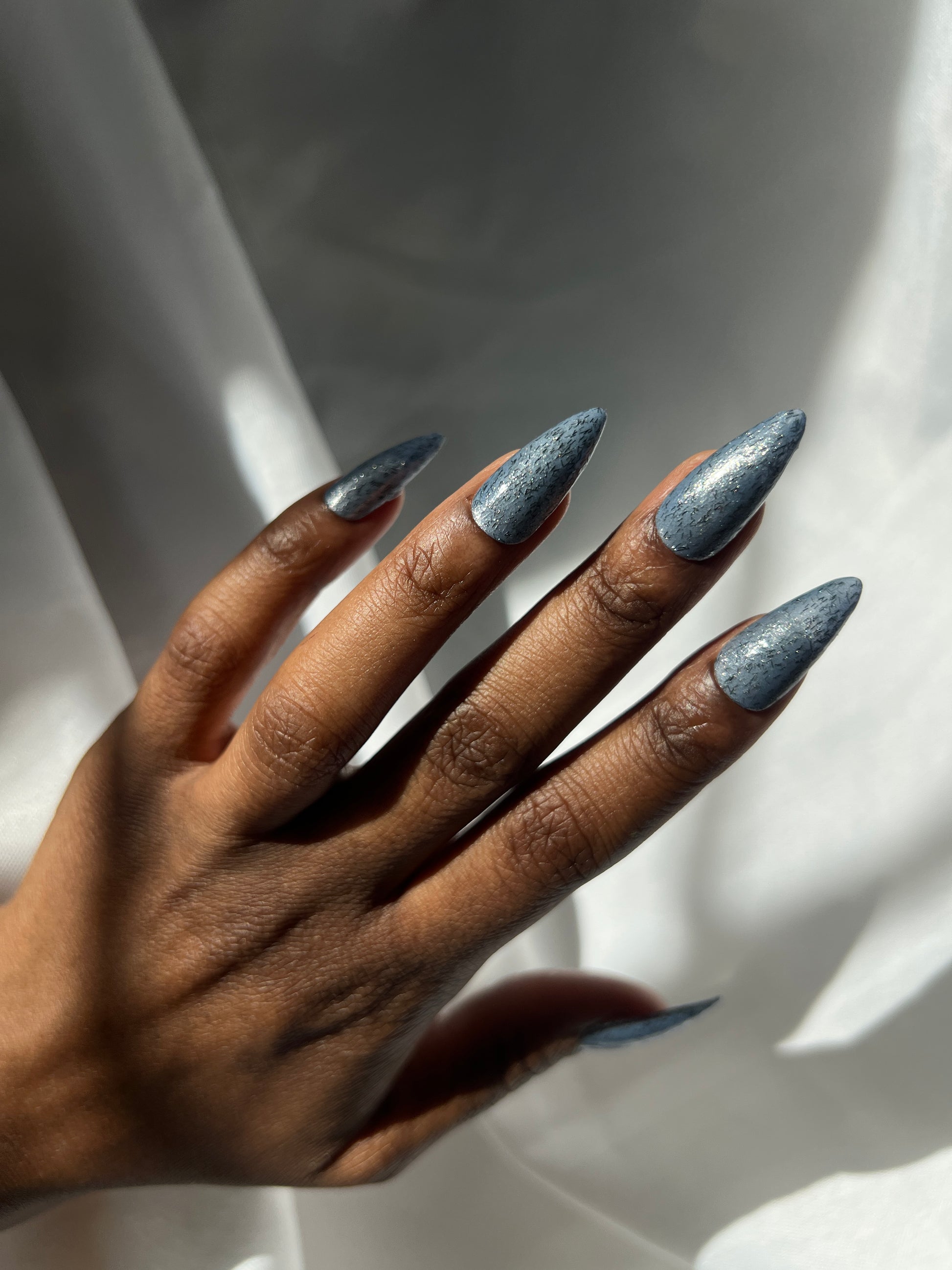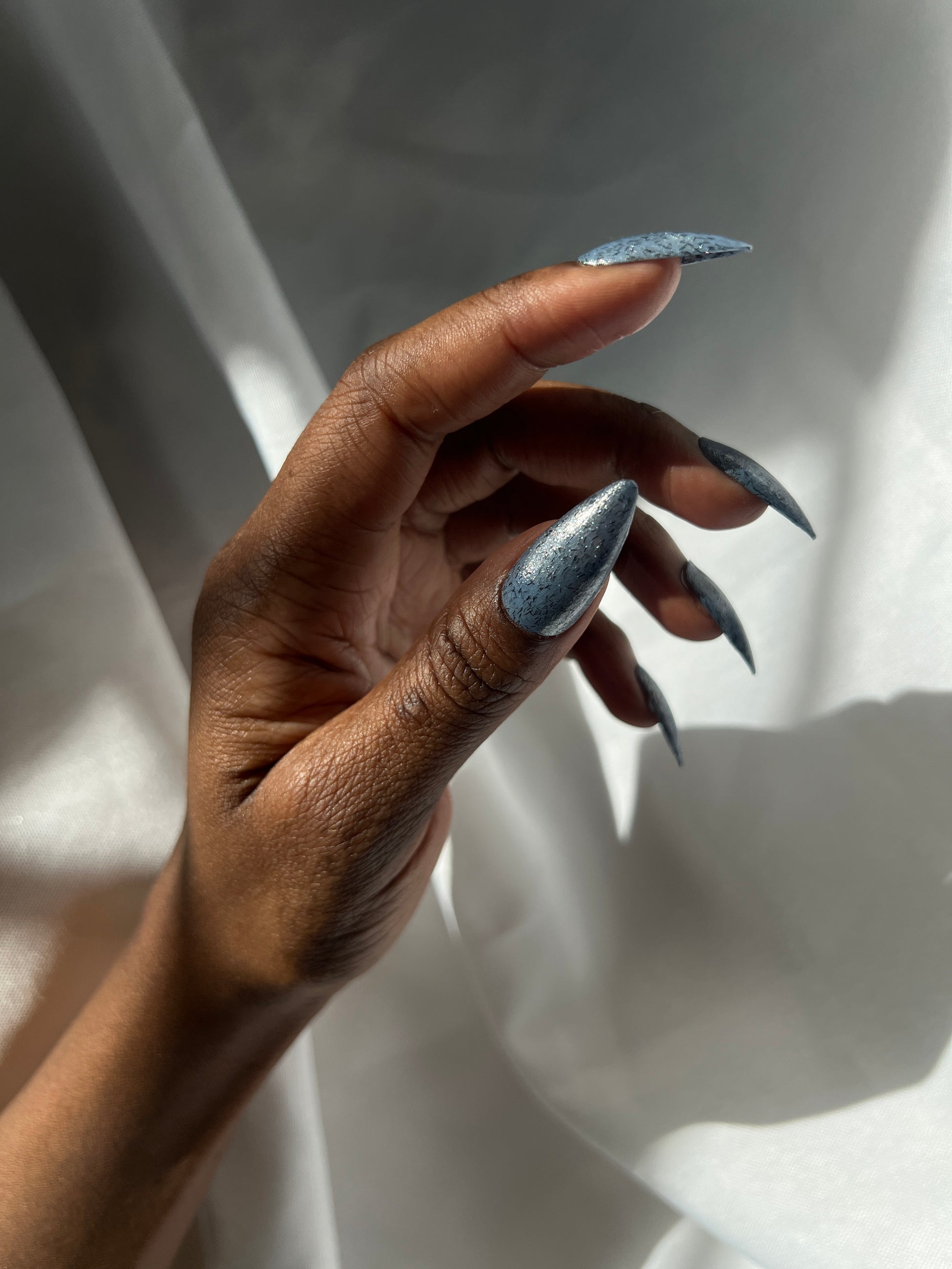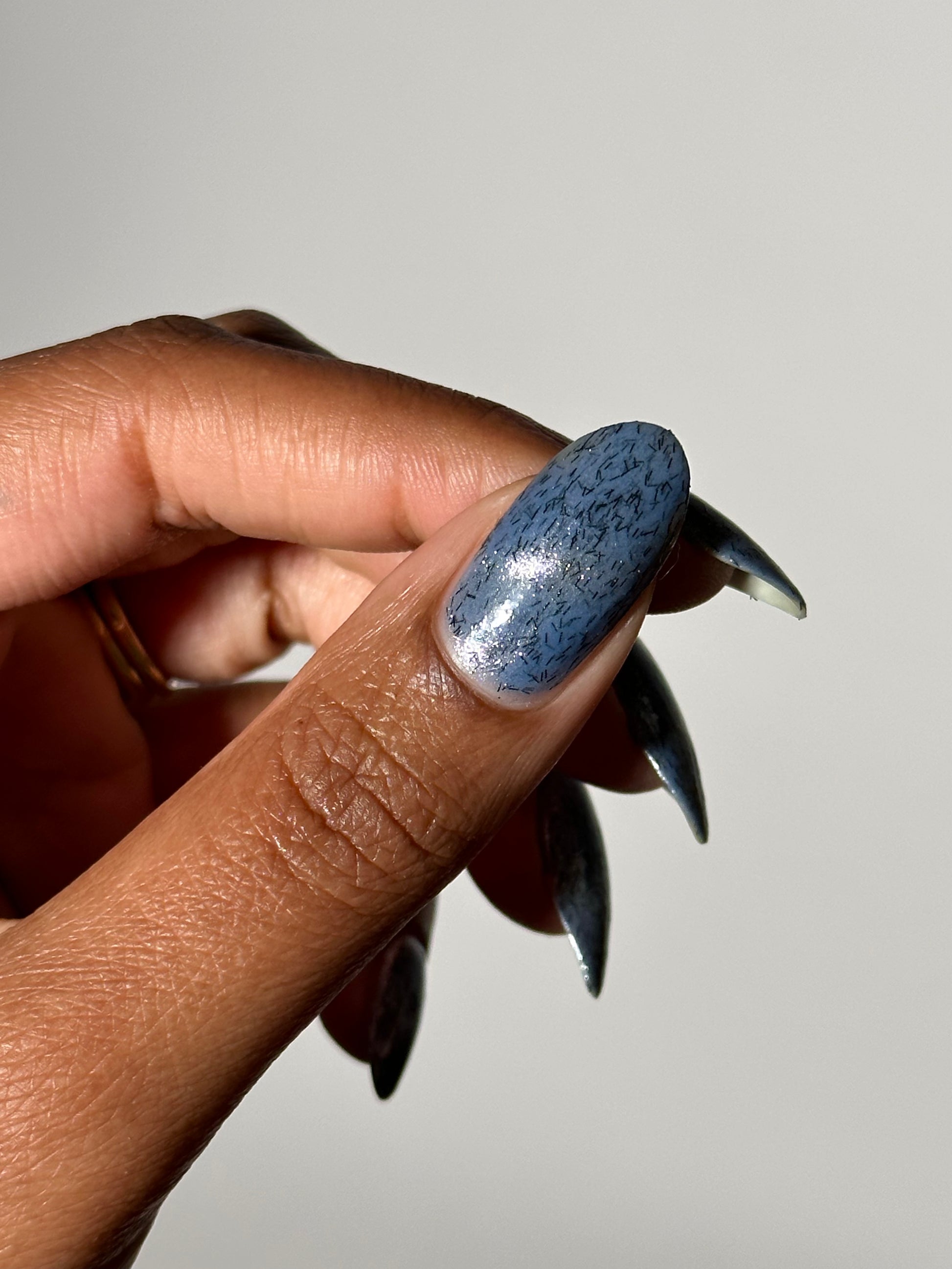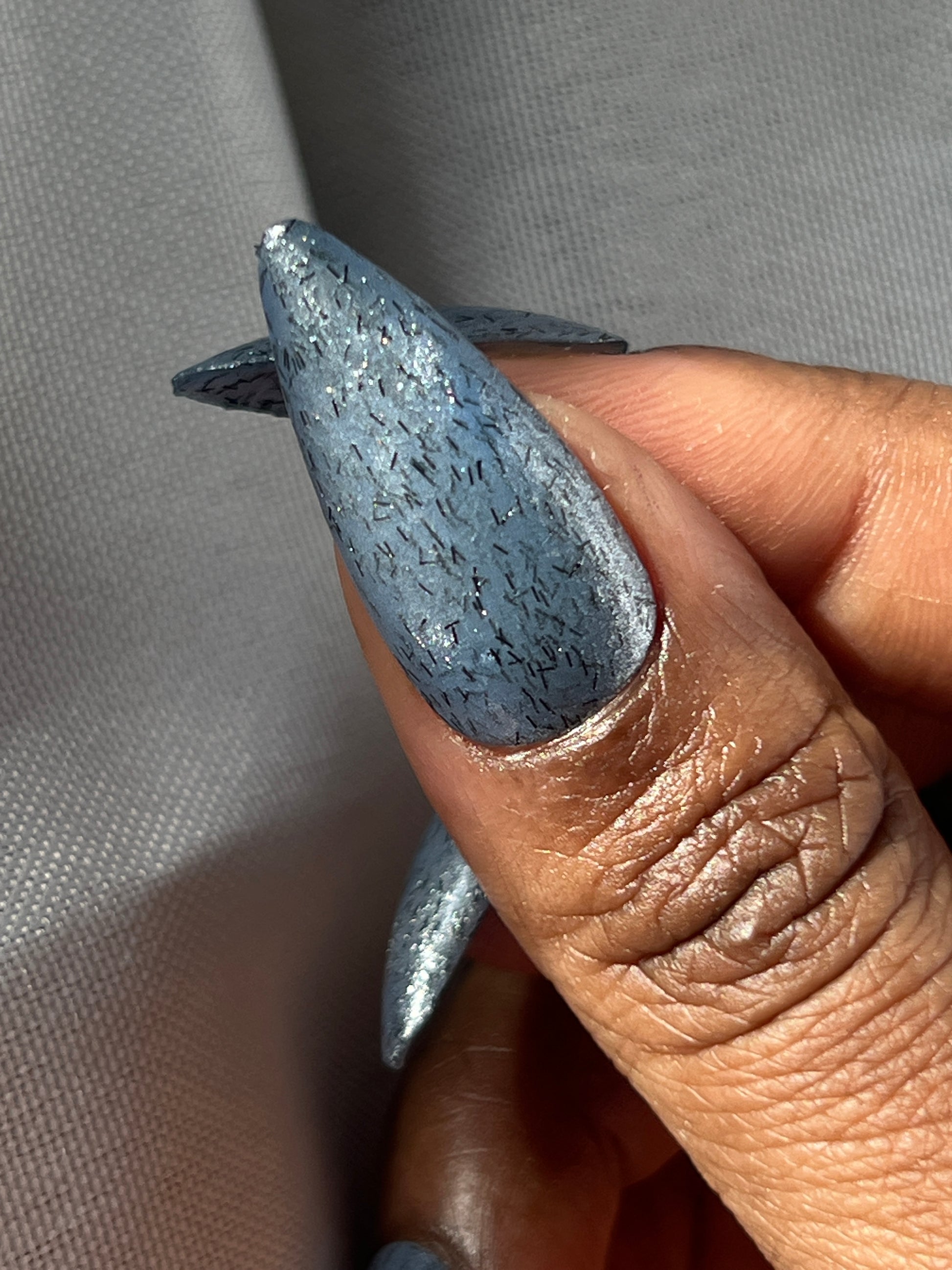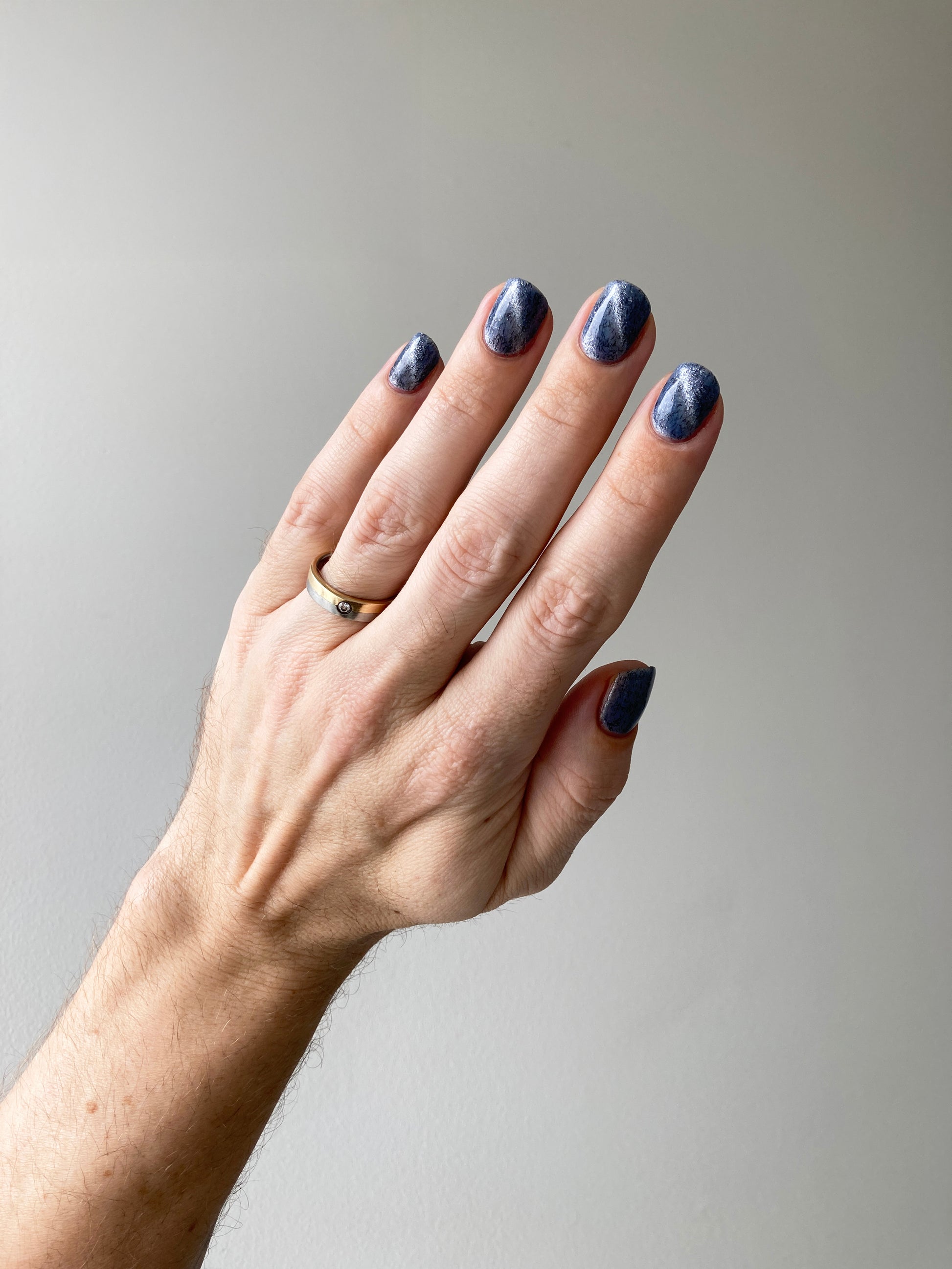 Application: Apply base coat. Add 1-3 coats of magnetic polish for desired base color opacity. On the final coat hold a neodymium magnet across the nail hovering right above to the wet polish immediately after application on each finger for 5-10 seconds. The polish will ONLY react to the magnet when wet. Follow by a top coat. Application guide here.