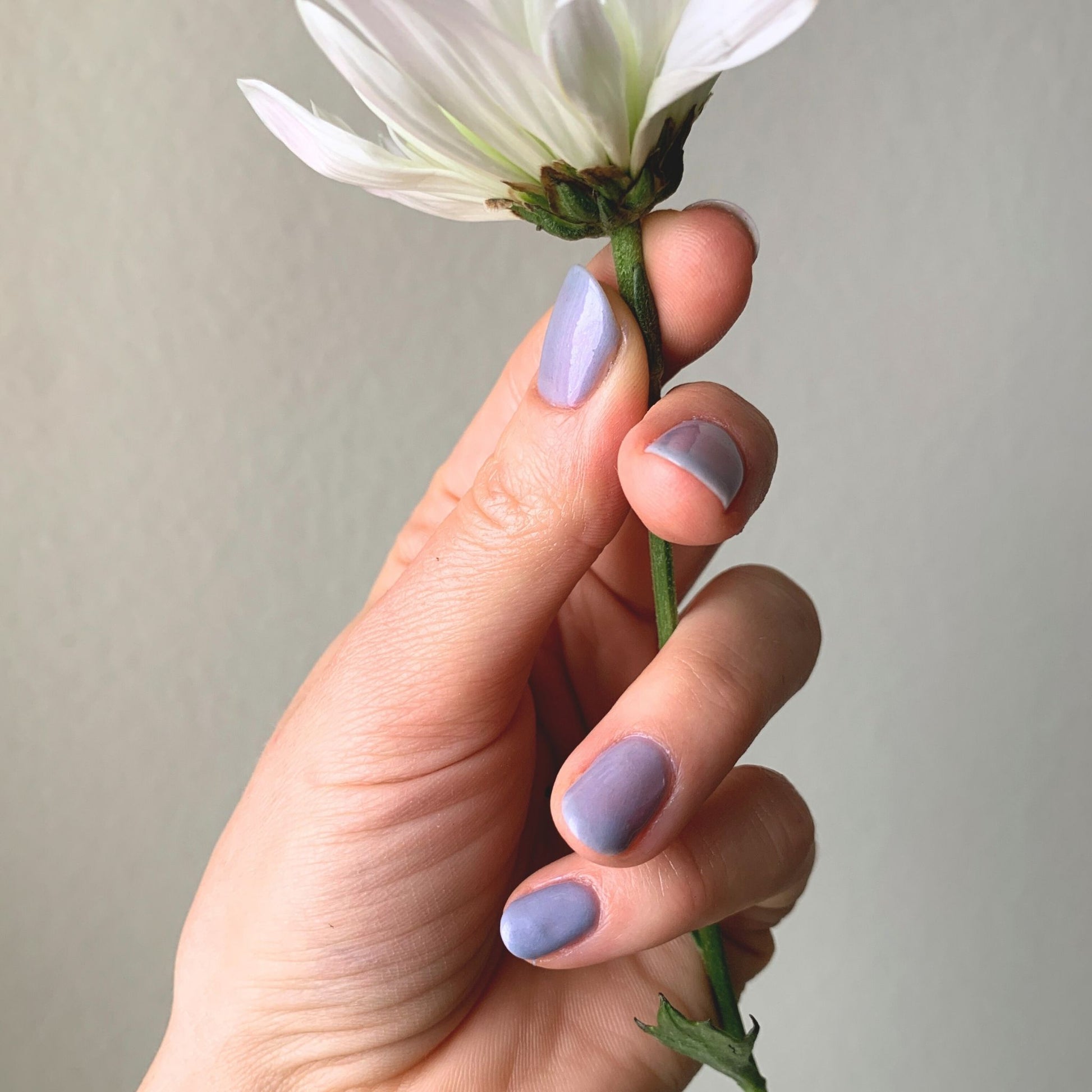 We break down this stone with a mortar and pestle. This polish is sheer but builds up beautifully. It will have texture as well as larger pieces of pigment present in the polish finish. Each batch will have slight color variations as we use different parts of the source material.Β This polish contains a small amount of earth mica to enhance the natural color.Β This polish contains a small amount of earth mica to enhance the natural color. The white veining in our swatch photo is the result of nail art and does not occur naturally from this polish.Β