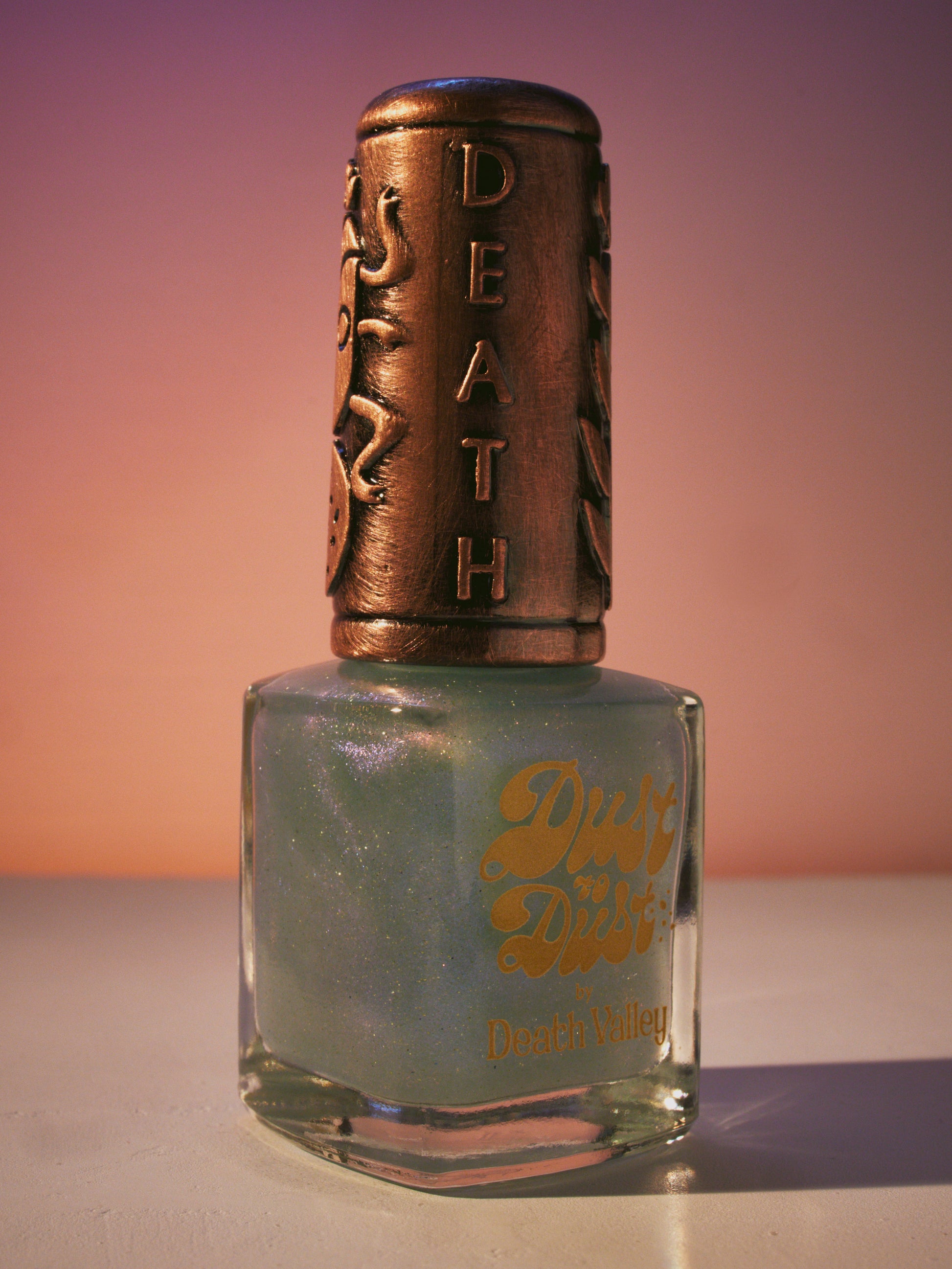This polish comes with a removable handmade decorative bronze cap atop our standard black matte nail polish cap - merging artistry with function. To forego bronze caps on your order click here.
