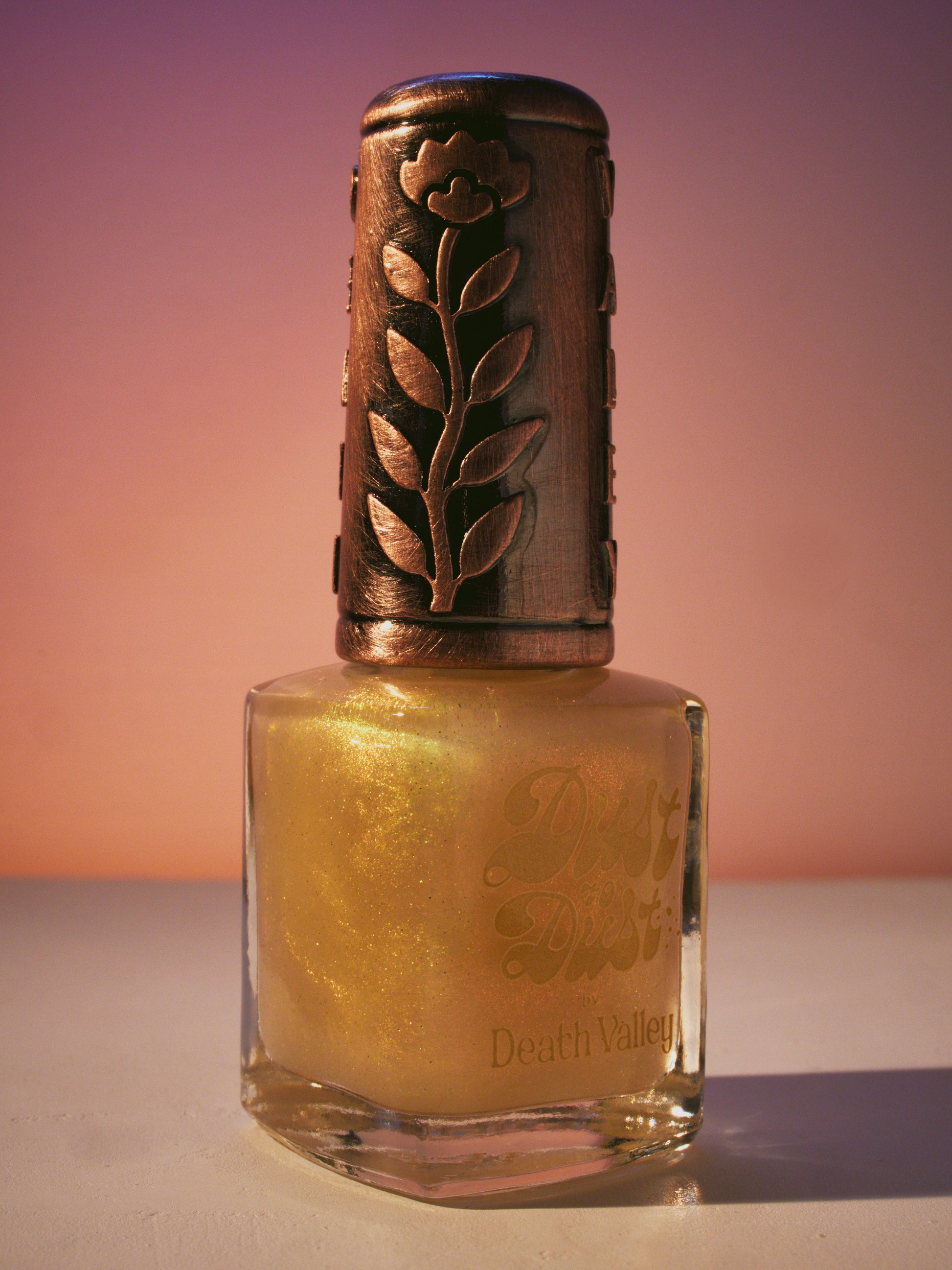 This polish comes with a removable handmade decorative bronze cap atop our standard black matte nail polish cap - merging artistry with function. To forego bronze caps on your order click here.