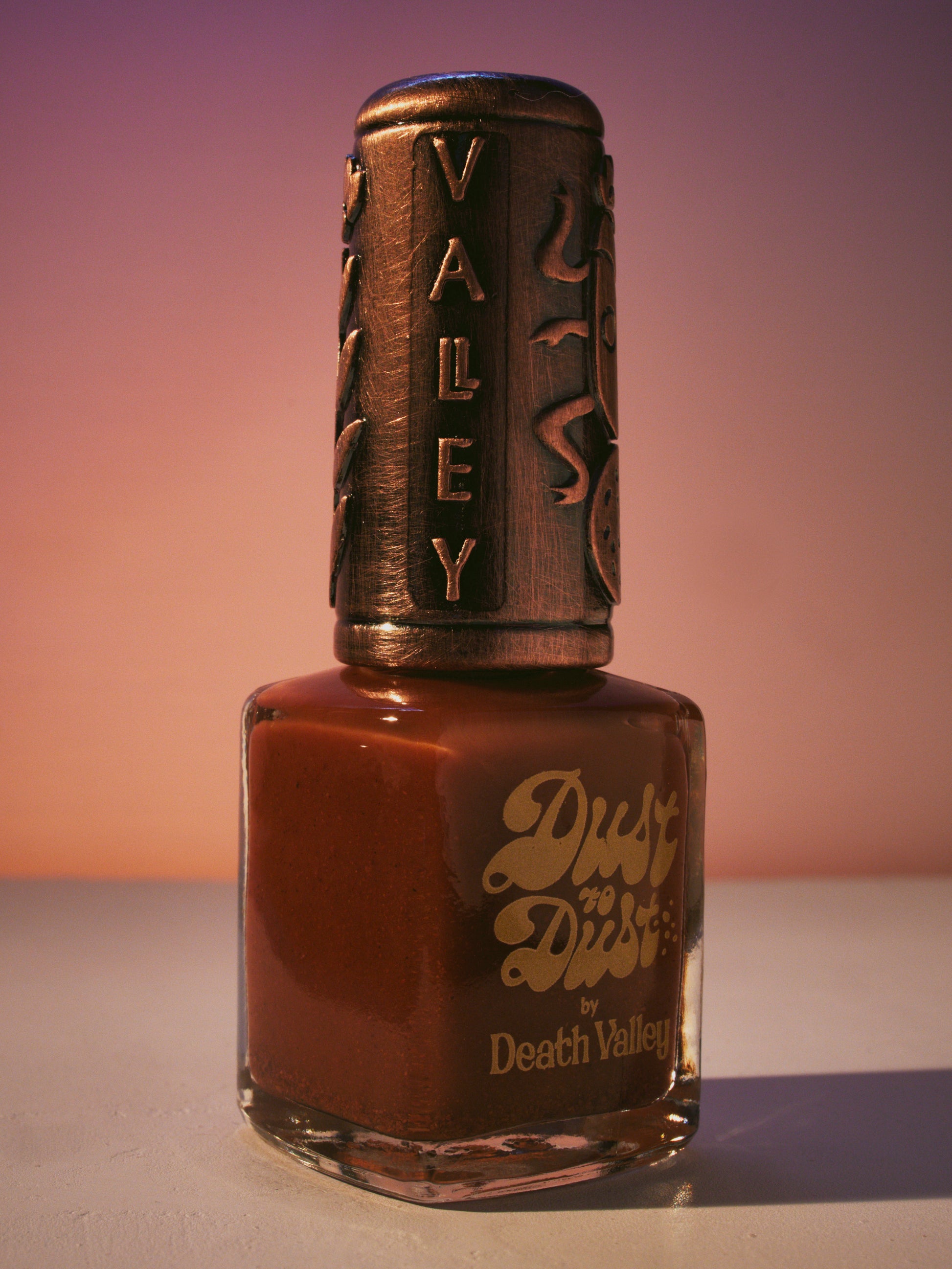 This polish comes with a removable handmade decorative bronze cap atop our standard black matte nail polish cap - merging artistry with function. To forego bronze caps on your order click here.