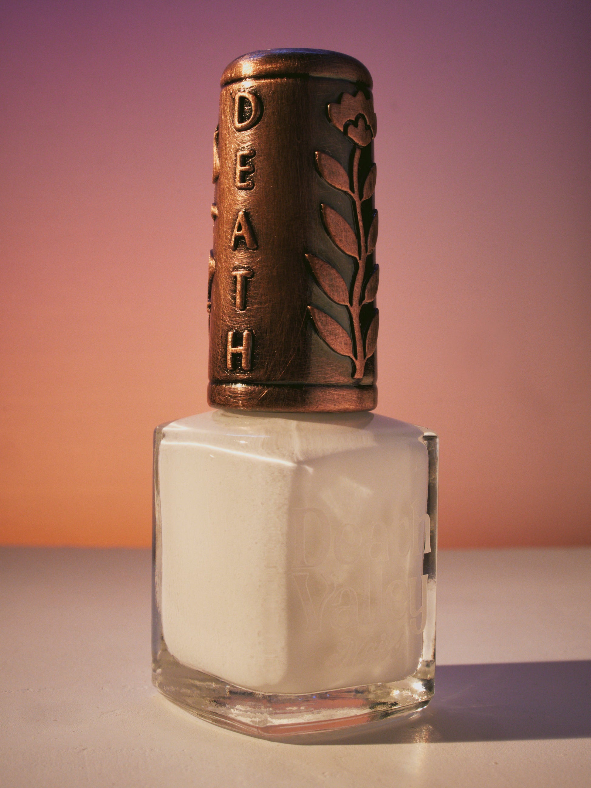 This polish comes with a removable handmade decorative bronze cap atop our standard black matte nail polish cap - merging artistry with function. To forego bronze caps on your order click here.