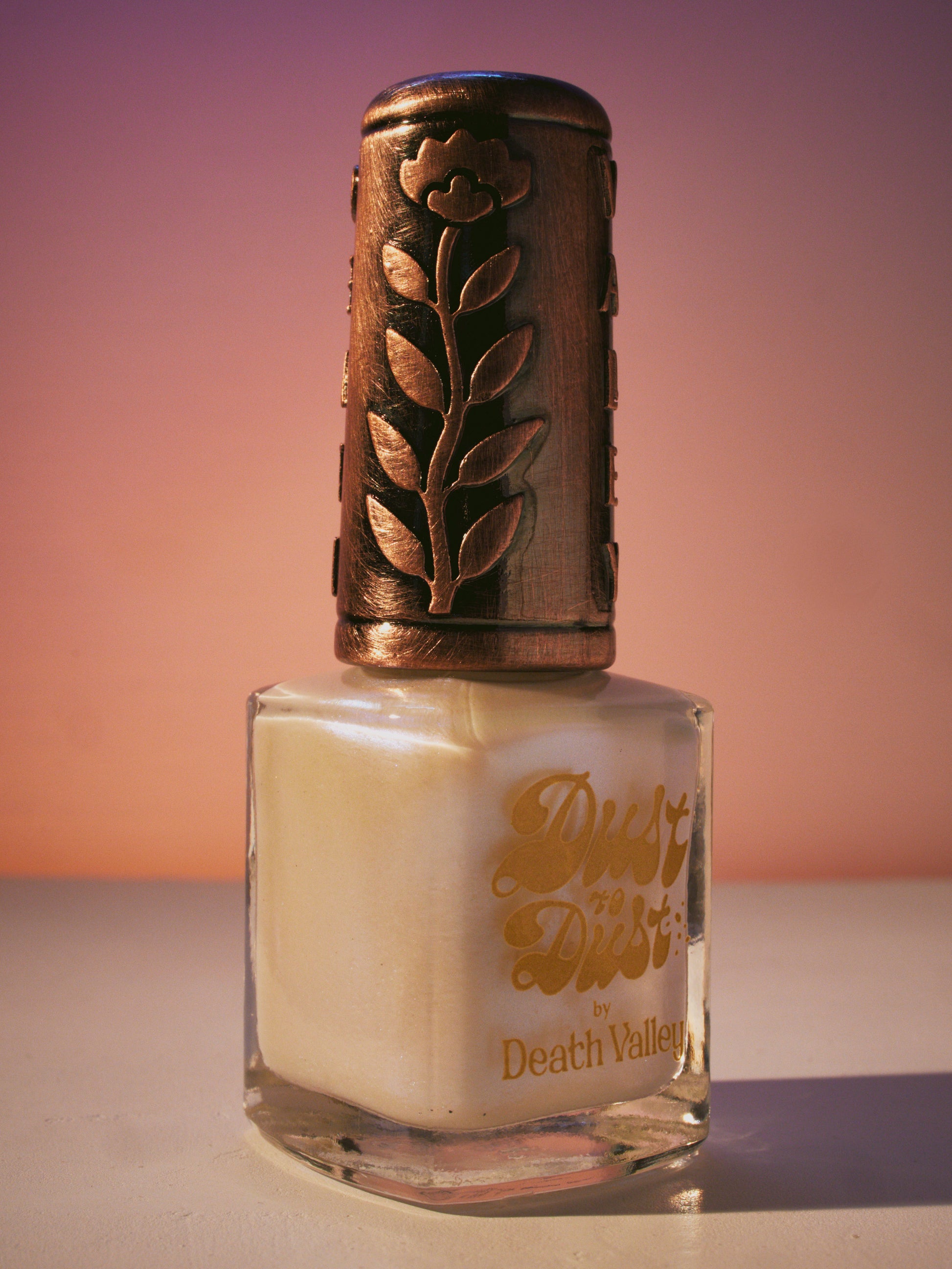 This polish comes with a removable handmade decorative bronze cap atop our standard black matte nail polish cap - merging artistry with function. To forego bronze caps on your order click here.