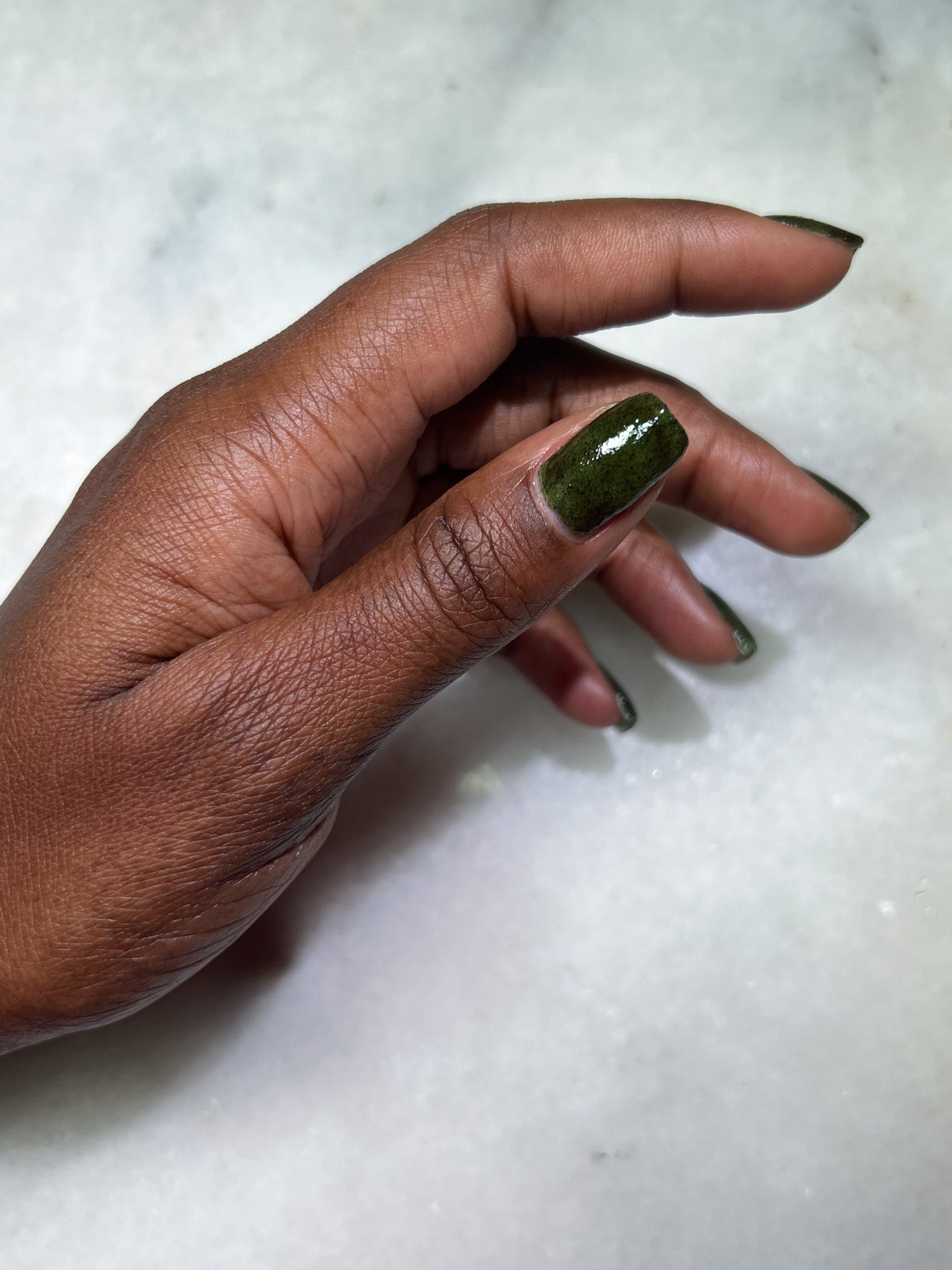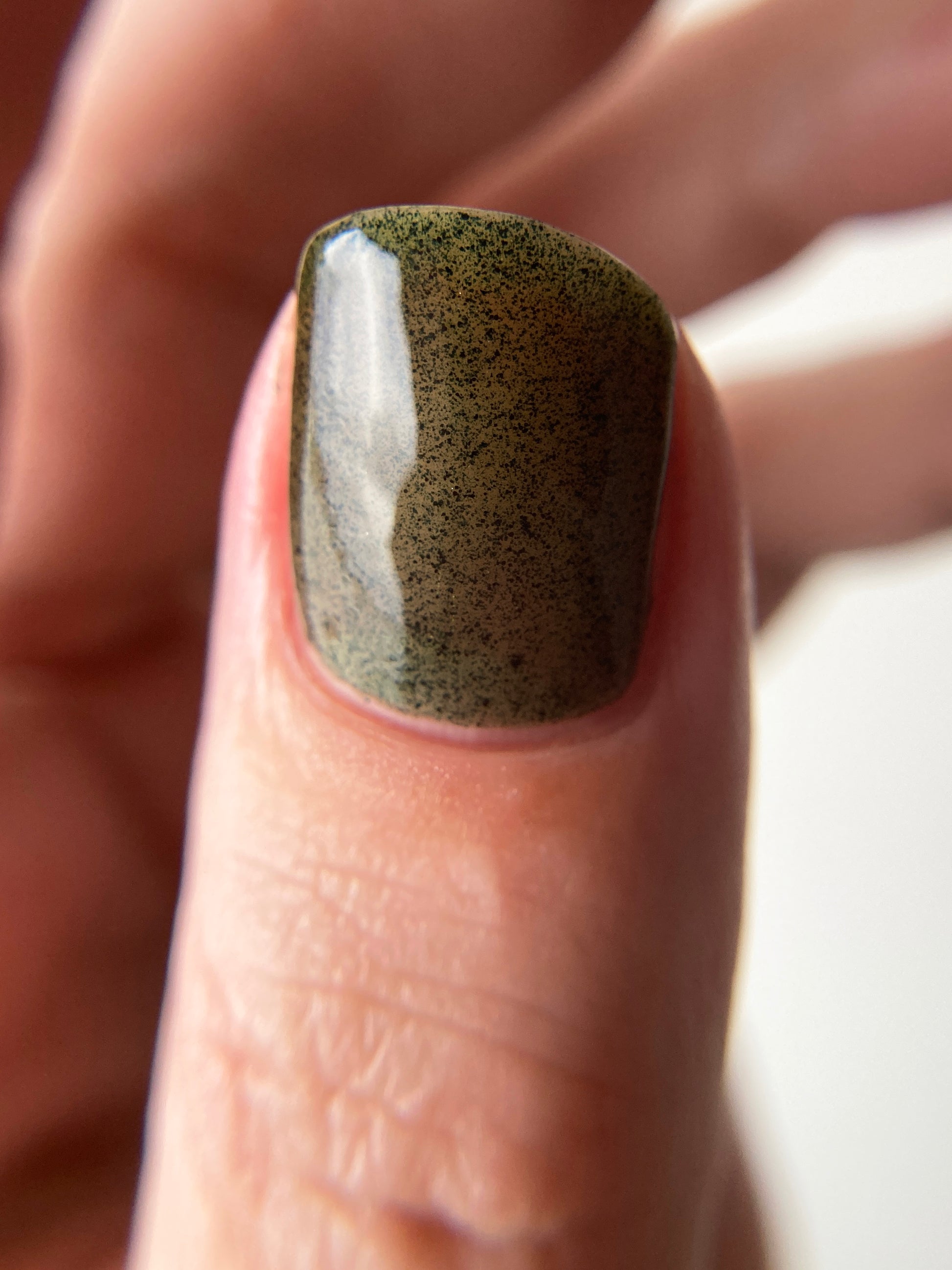 We break down this pigment down with a mortar and pestle. It will have texture as well as larger pieces of pigment present in the polish finish. Each batch will have slight color variations as we use different parts of the source material.