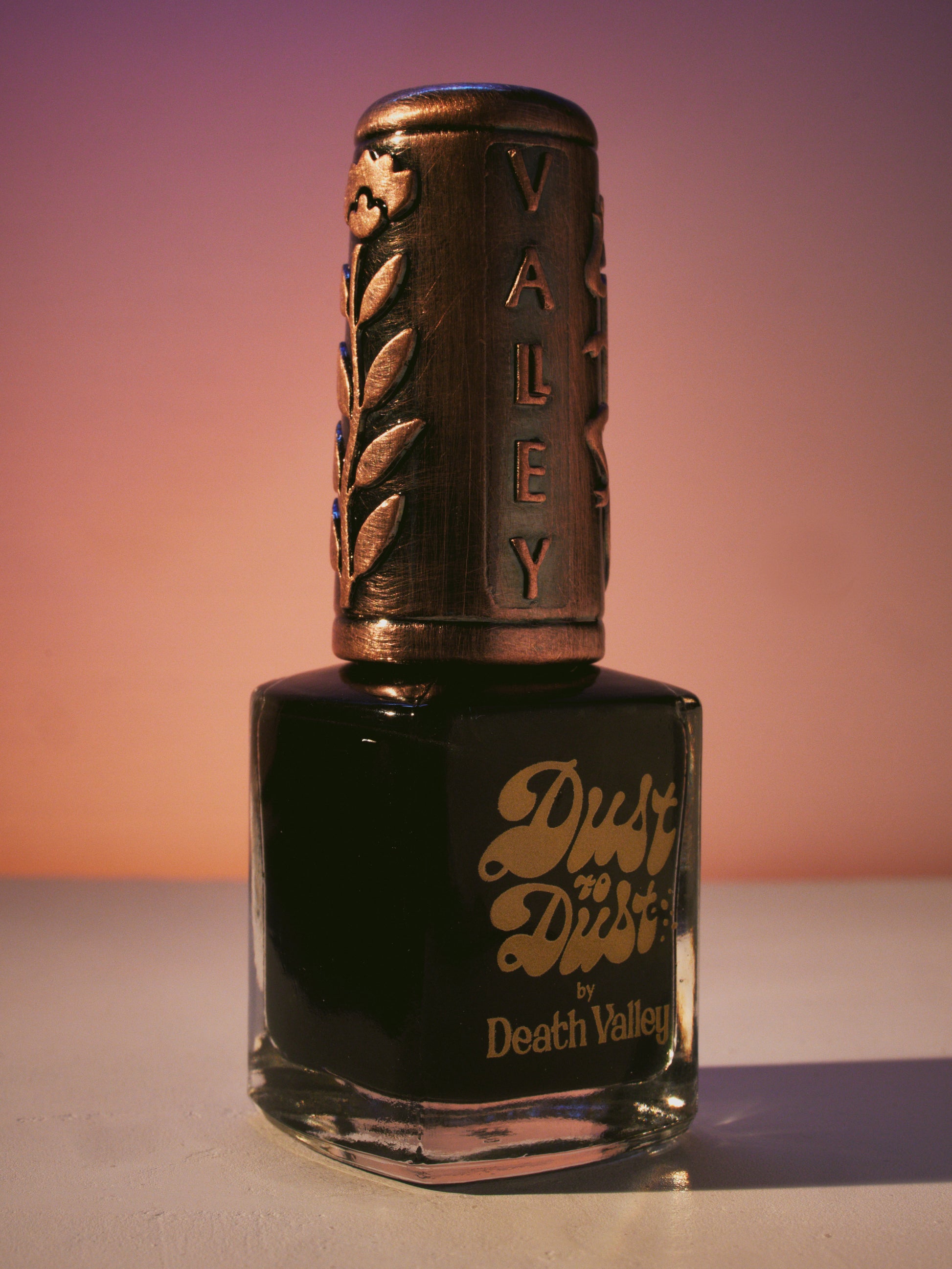 This polish comes with a removable handmade decorative bronze cap atop our standard black matte nail polish cap - merging artistry with function. To forego bronze caps on your order click here.