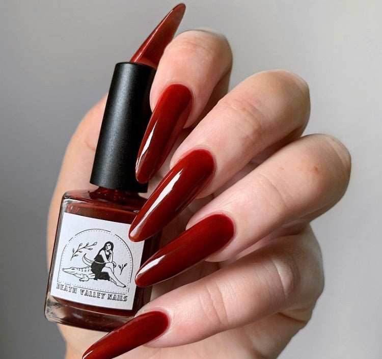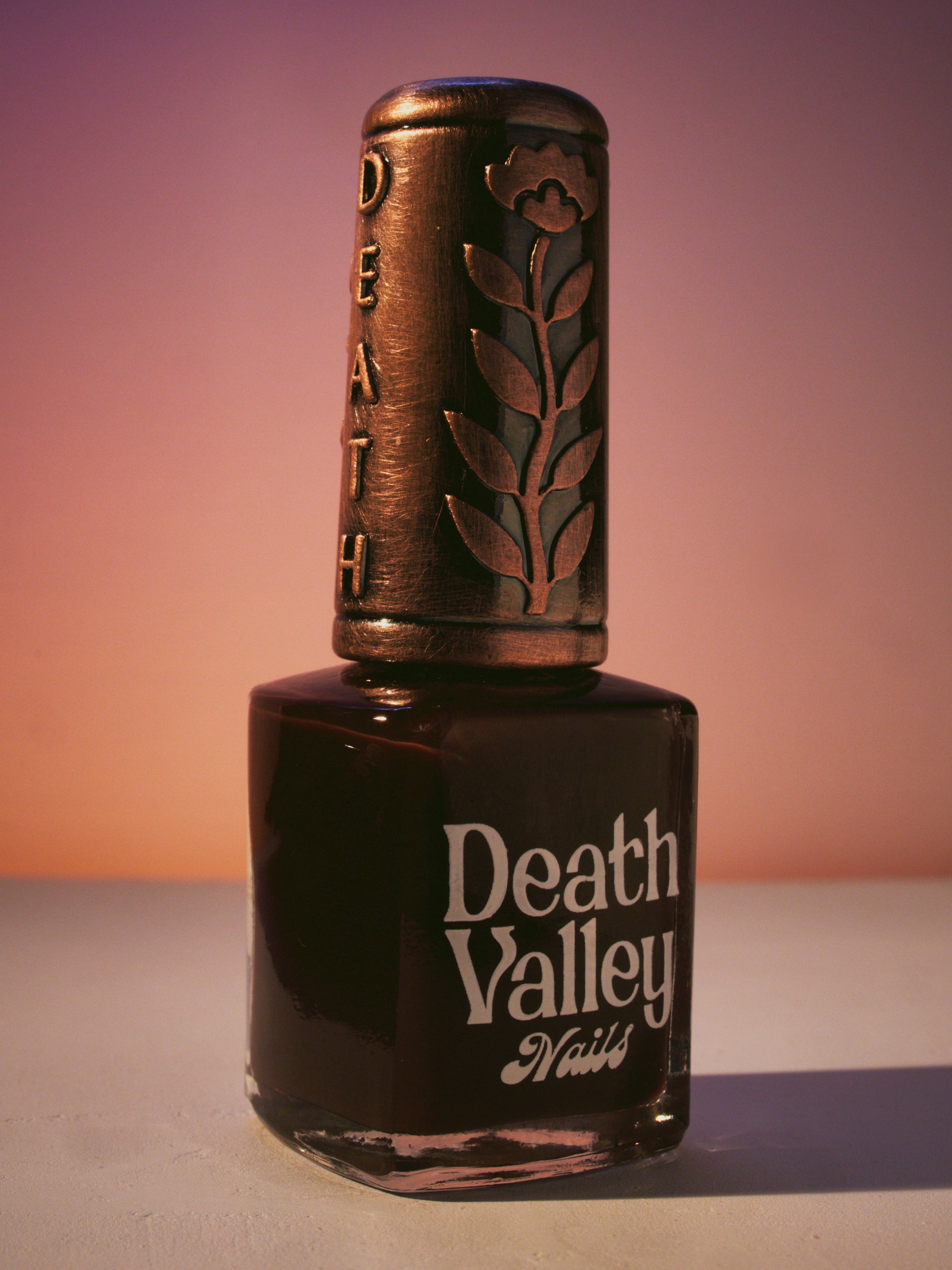 This polish comes with a removable handmade decorative bronze cap atop our standard black matte nail polish cap - merging artistry with function. To forego bronze caps on your order click here.