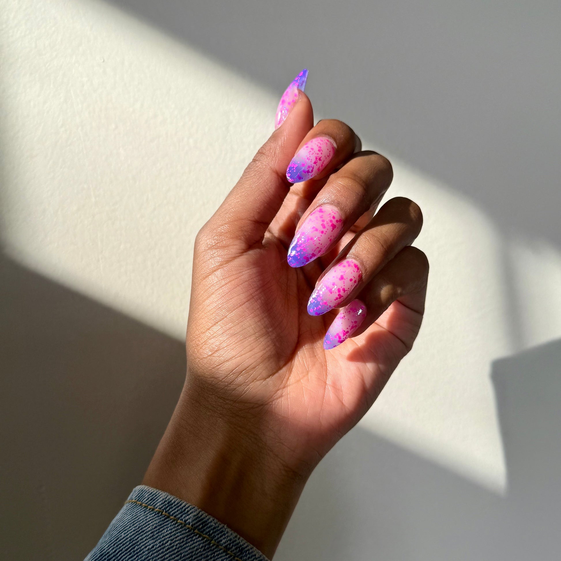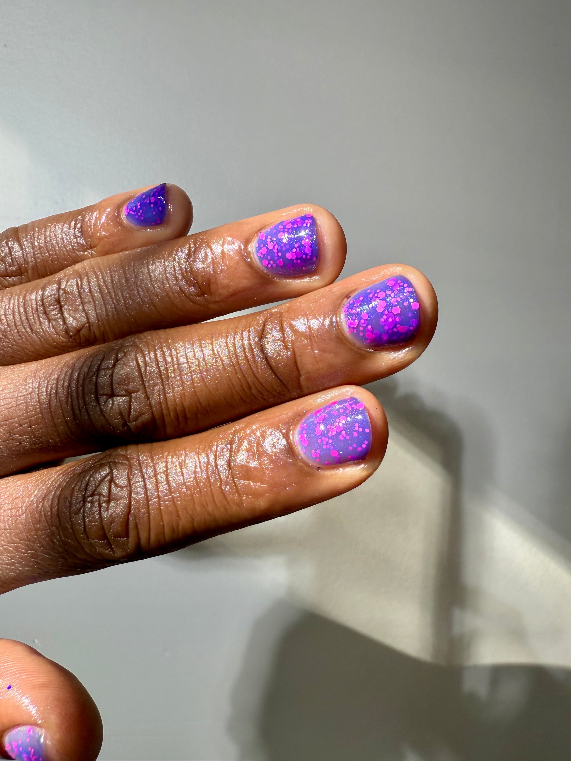 This thermal has neon hot pink glitter with mirco iridescent blue shimmer.