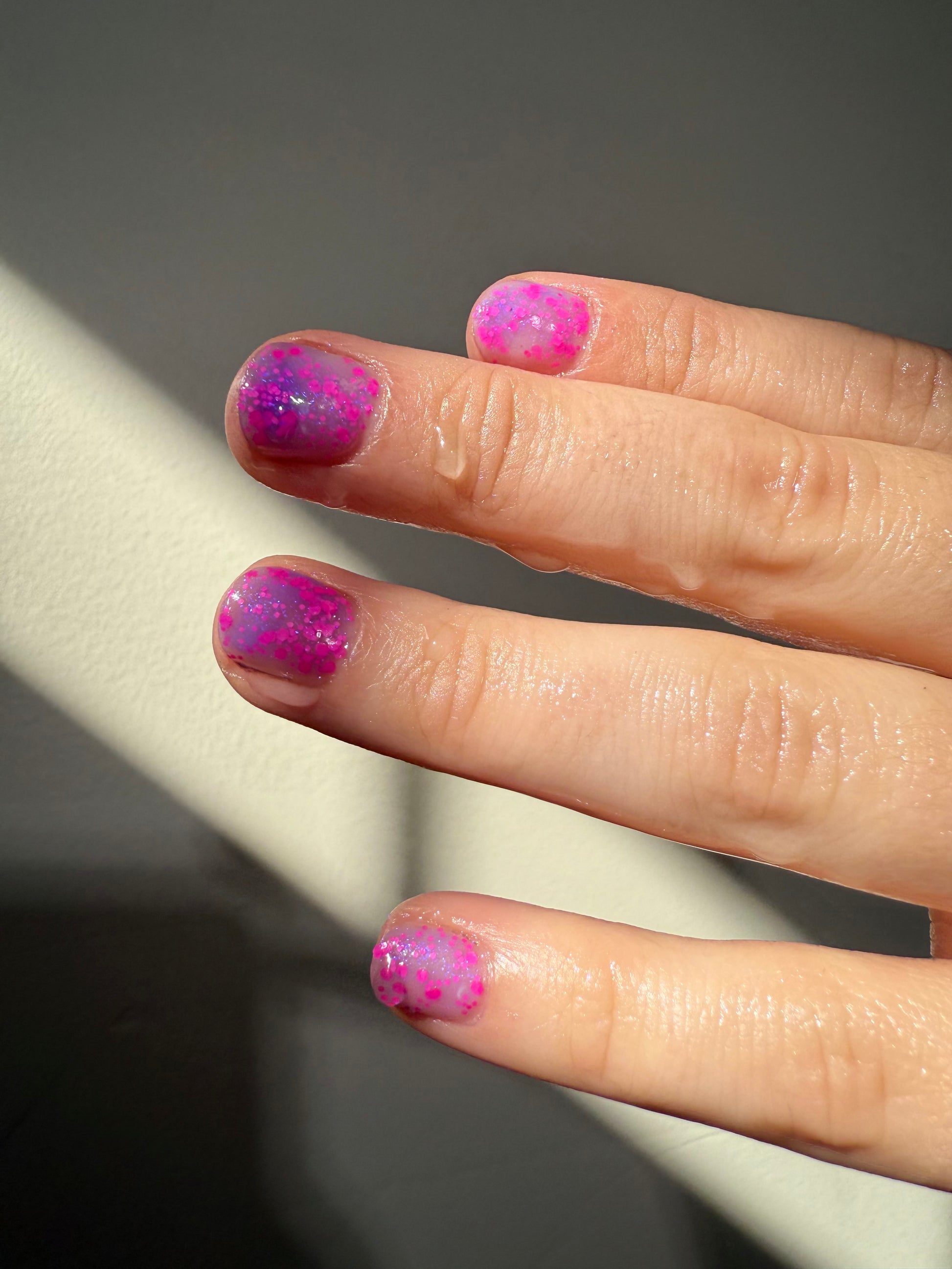 Care: Thermal polish will actively transition for up to two years if kept in a dark and cool environment. Once the polish is not able to transition anymore the color will remain in either the hot or the cold state.