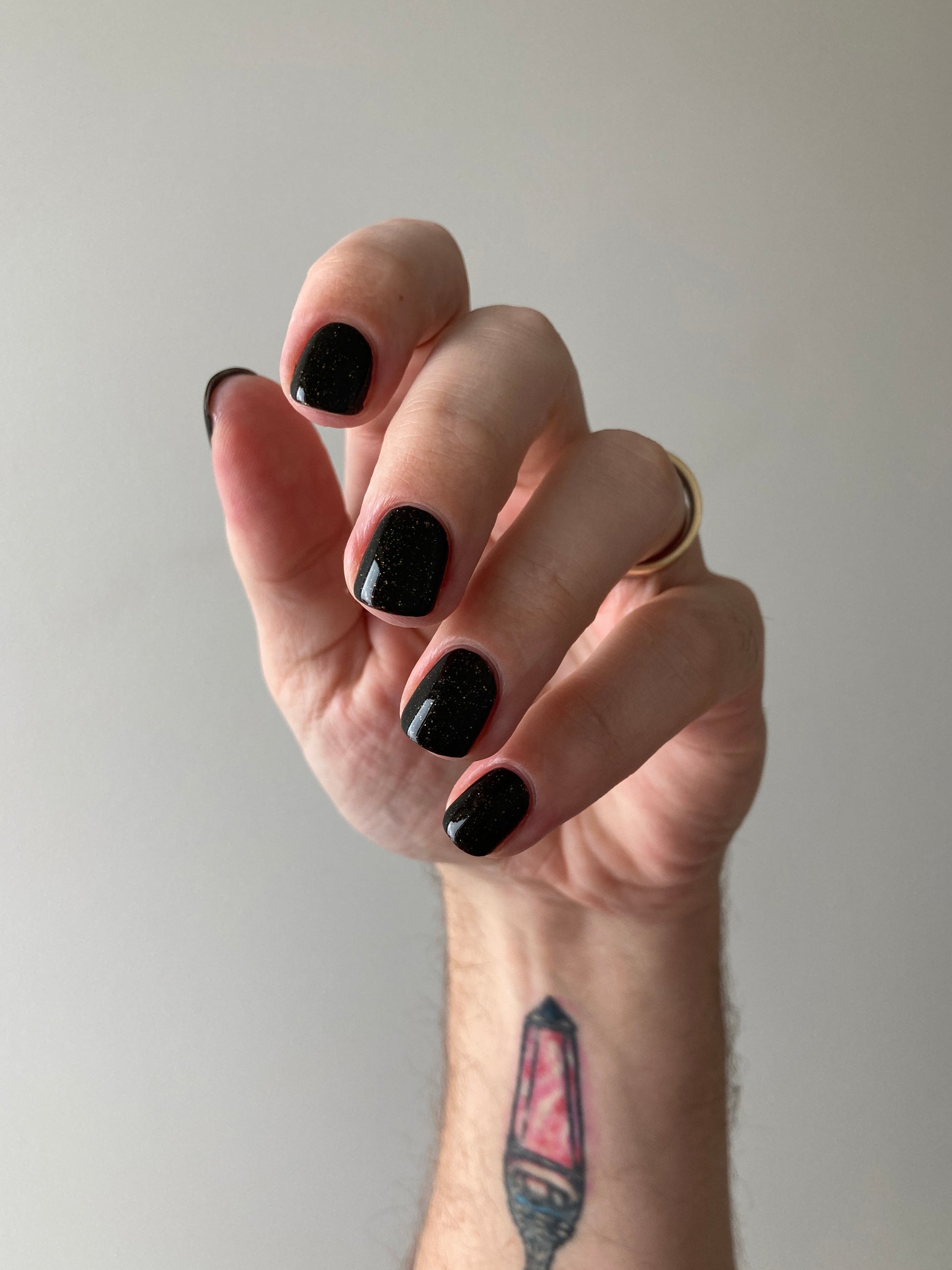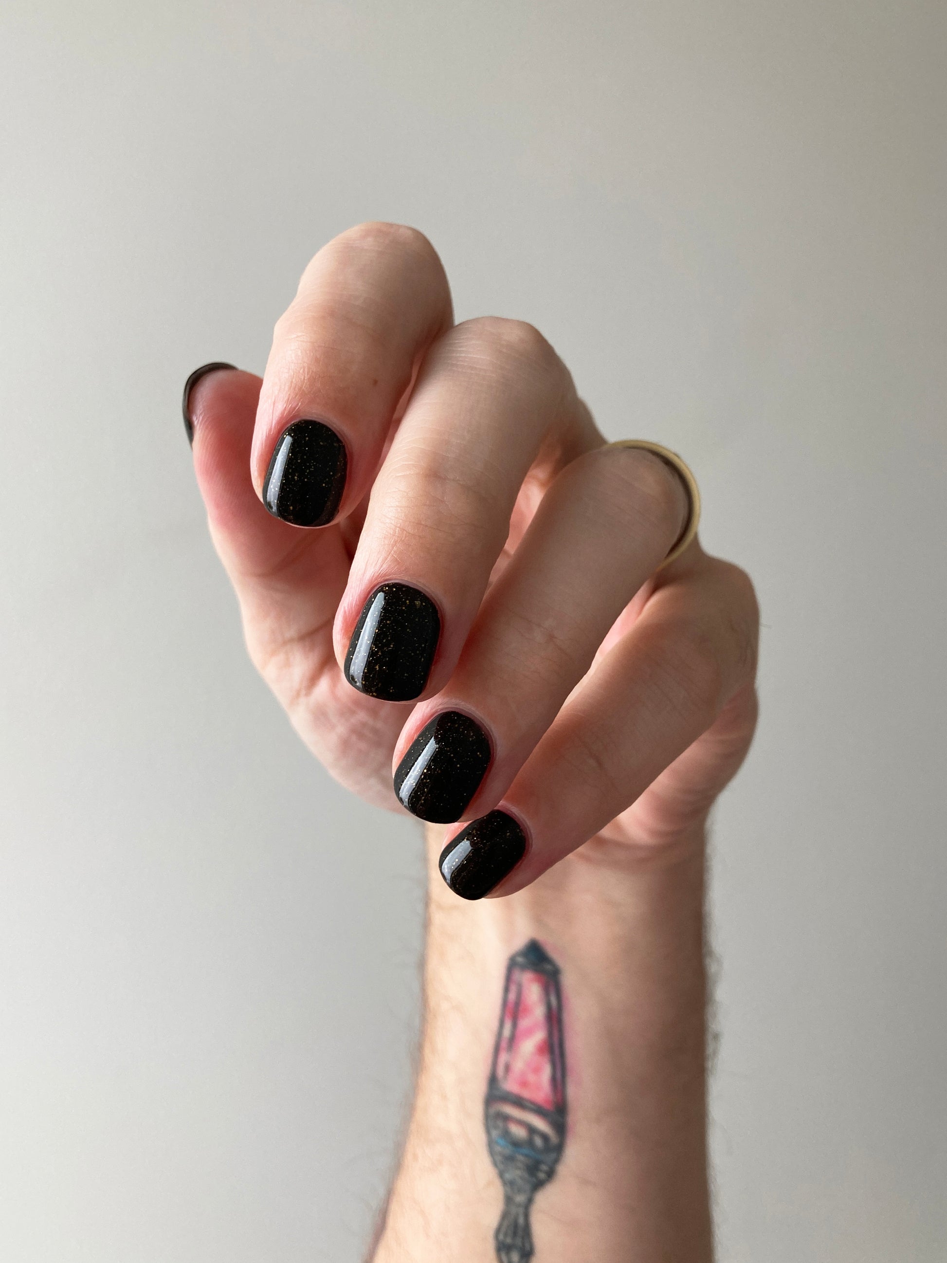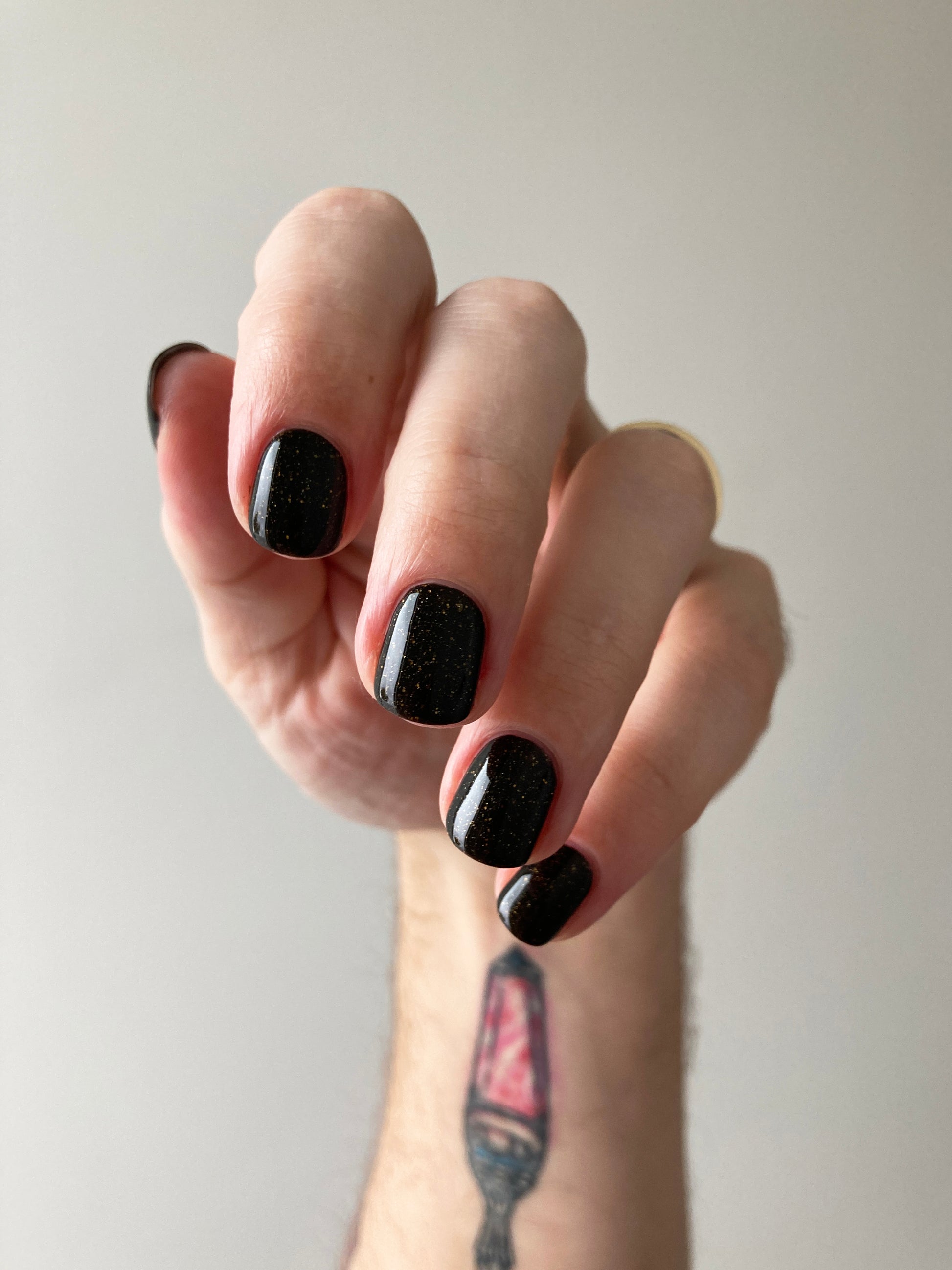 This polish comes with a removable handmade decorative bronze cap atop our standard black matte nail polish cap - merging artistry with function. To forego bronze caps on your order click here.