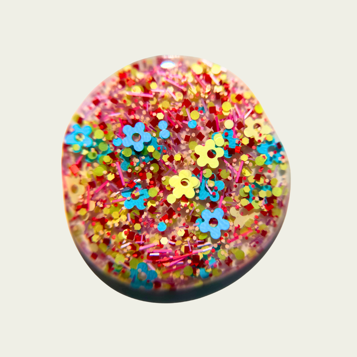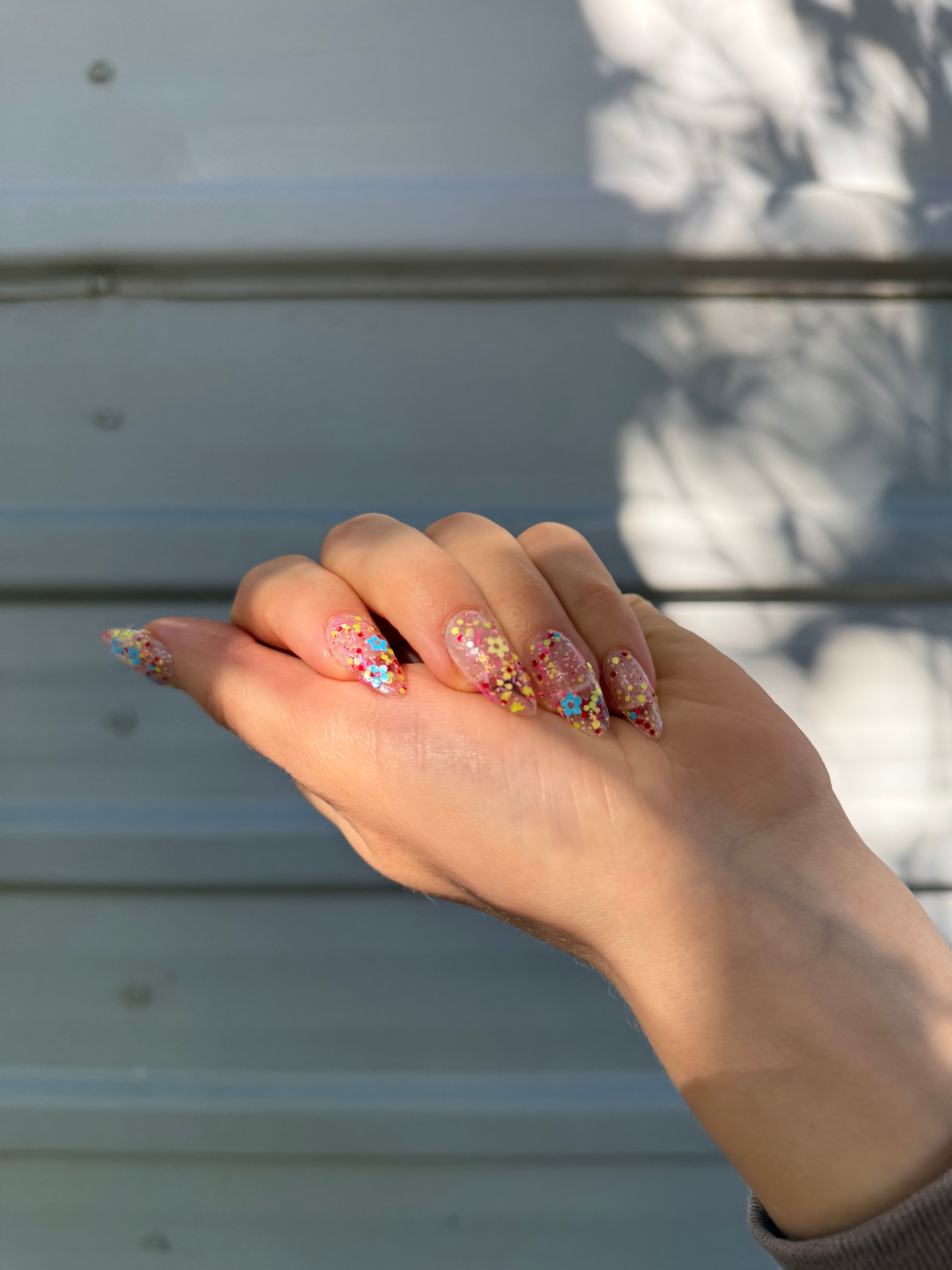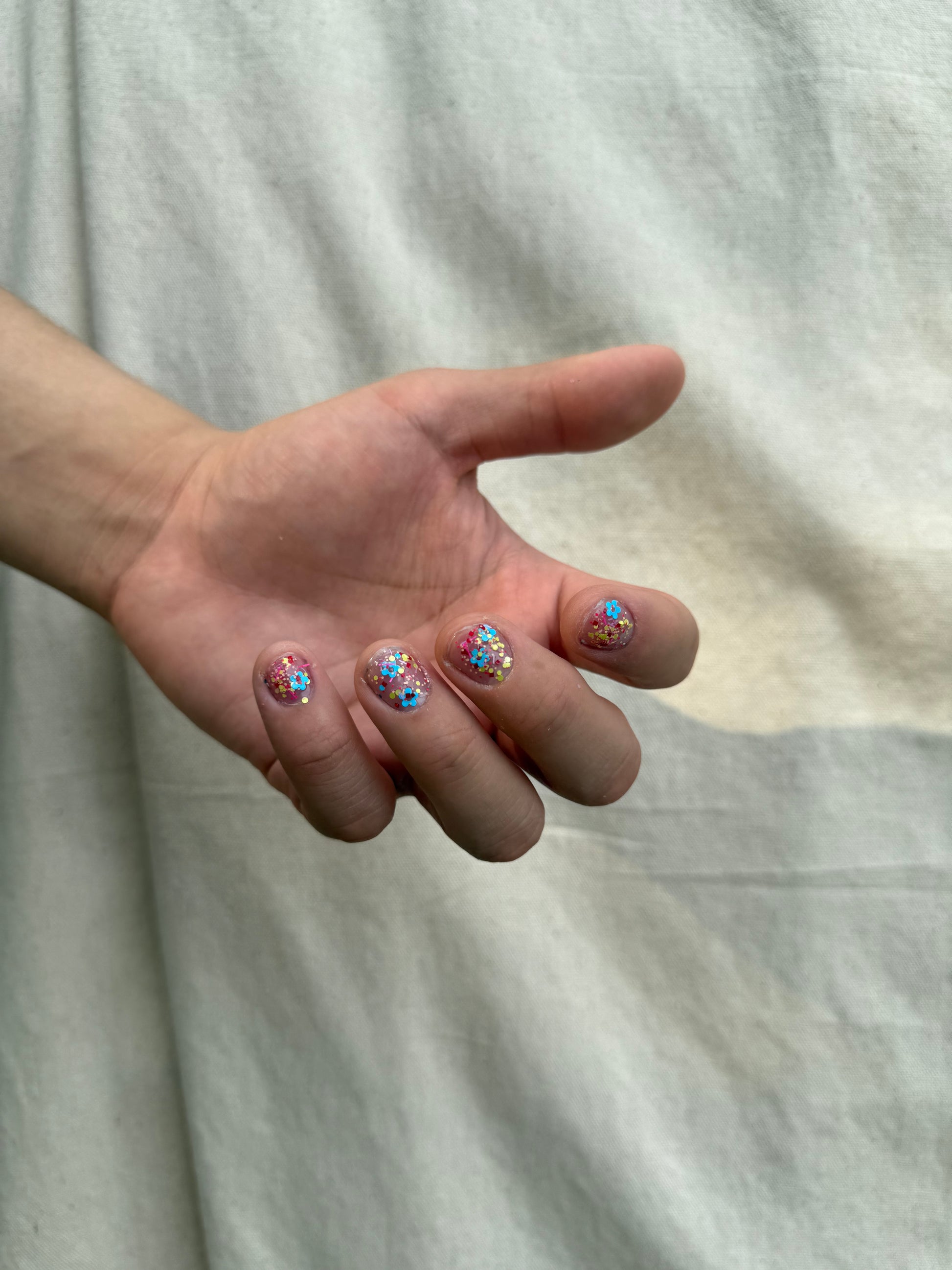 Clear base packed with a variety of neon and pastel matte glitters. If you are a maximalist with a penchant for 70's clothing, Lisa Frank, and jelly sandals then this is the polish for you. The opposite of clean girl aesthetic. Chunky, chonky, chewy.