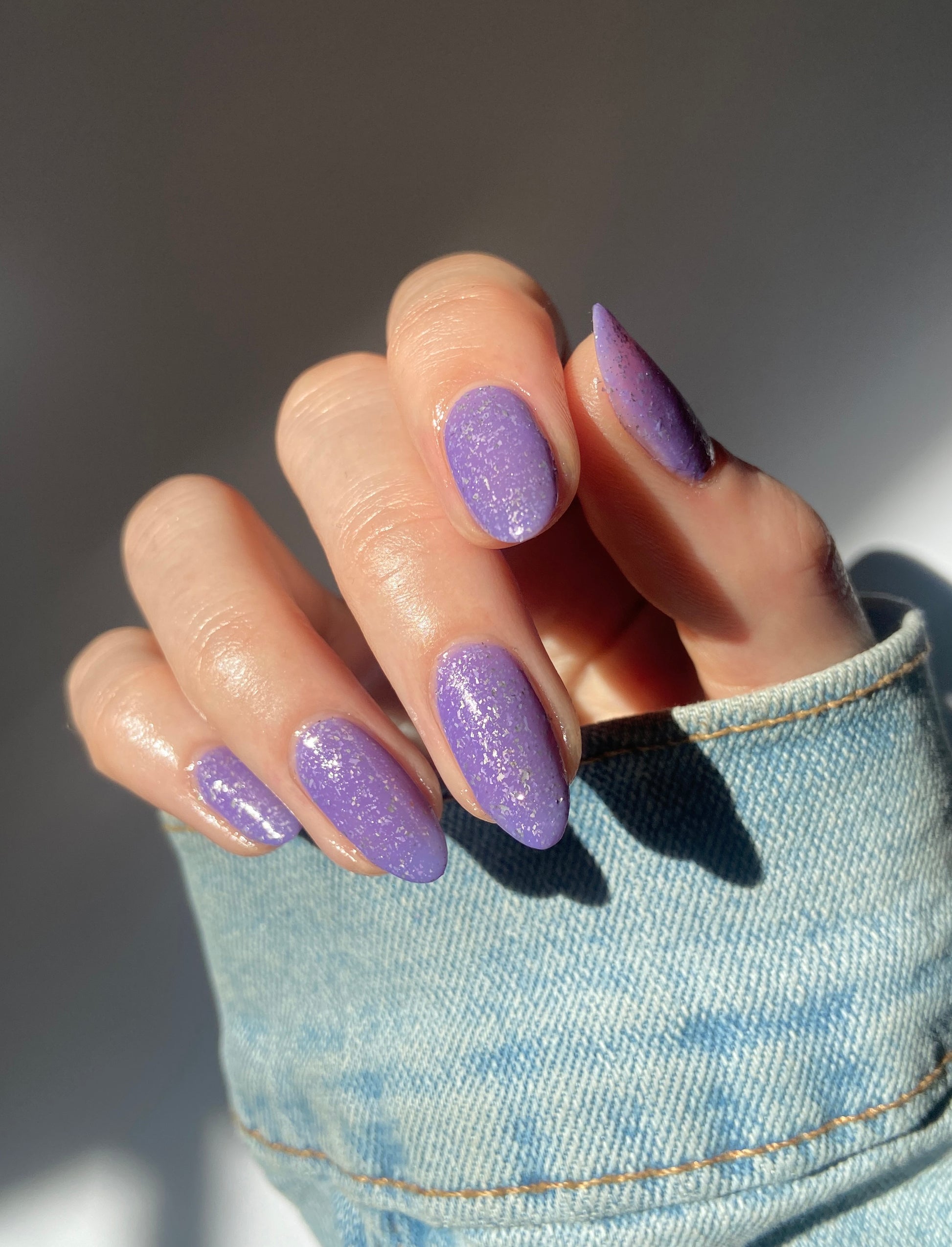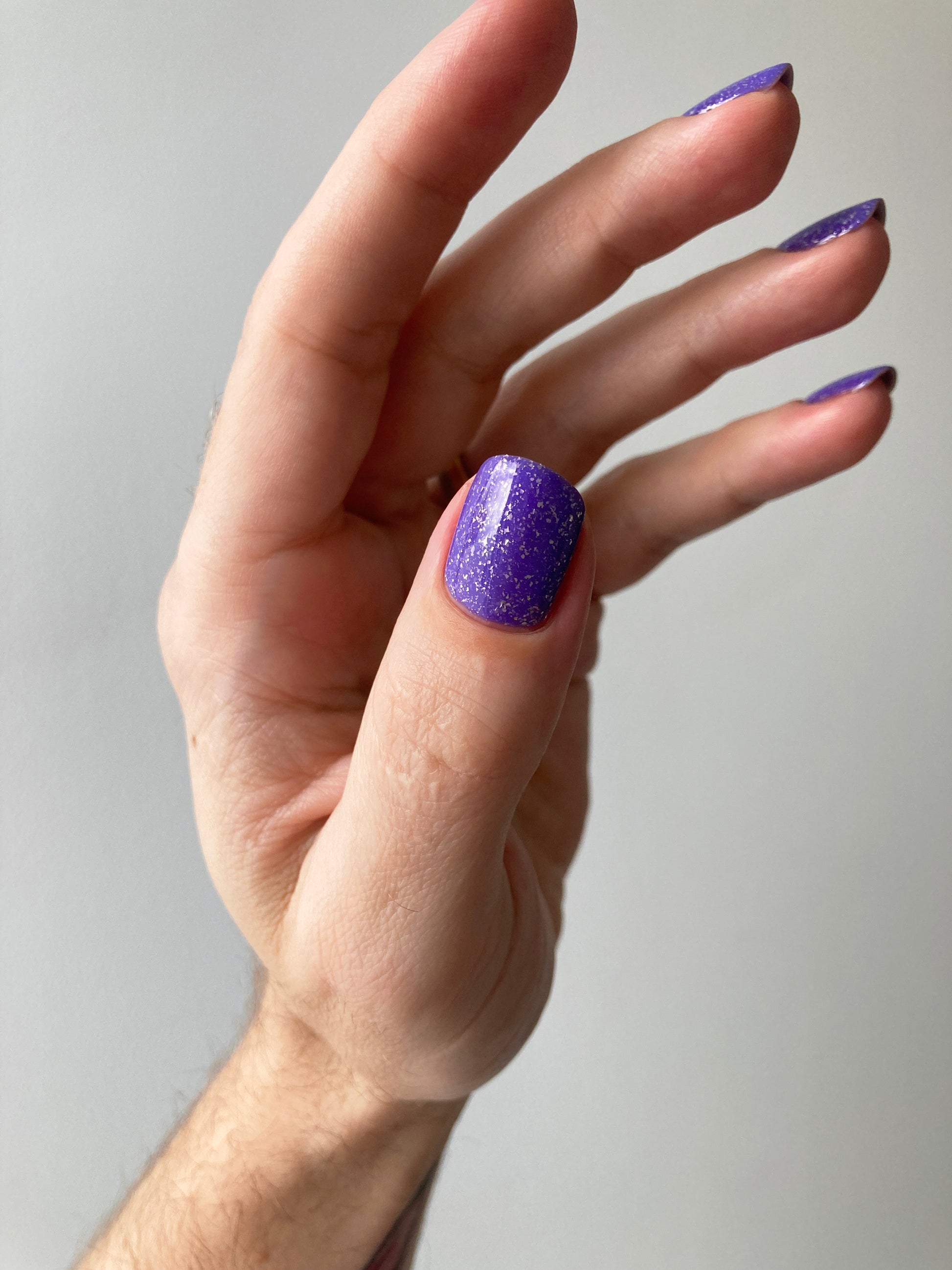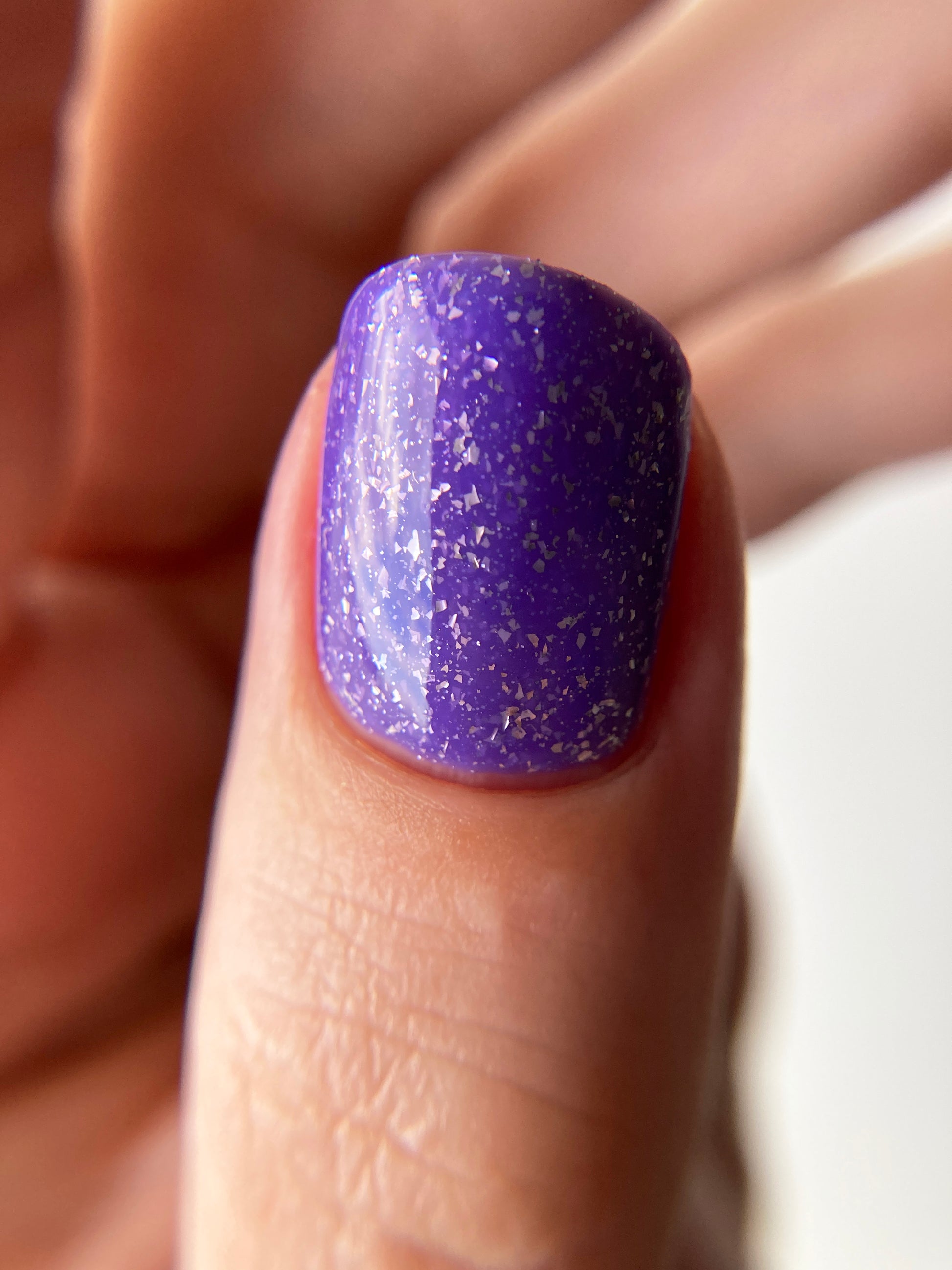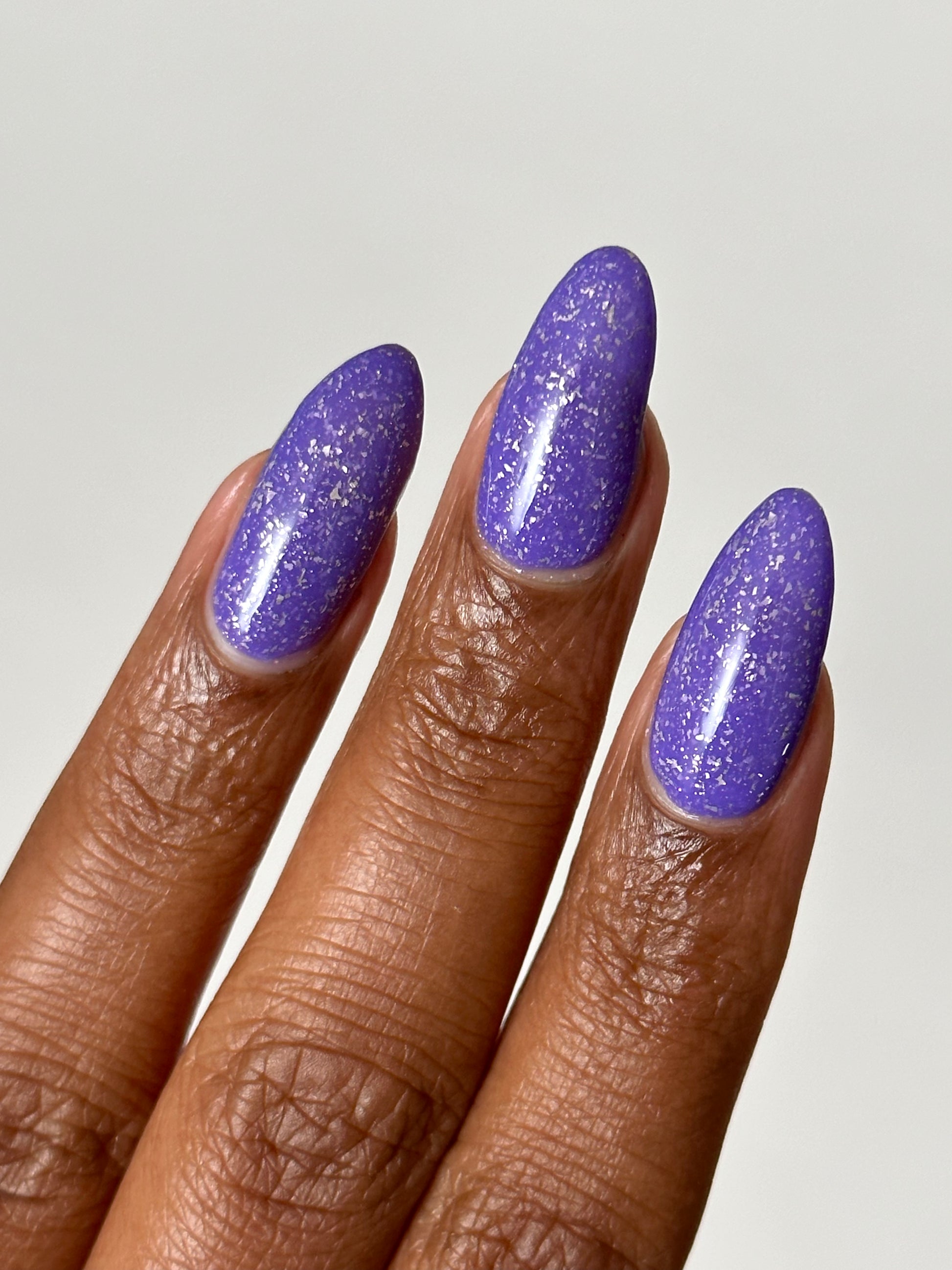 Jelly violet base filled with platinum flakies and micro silver glitter