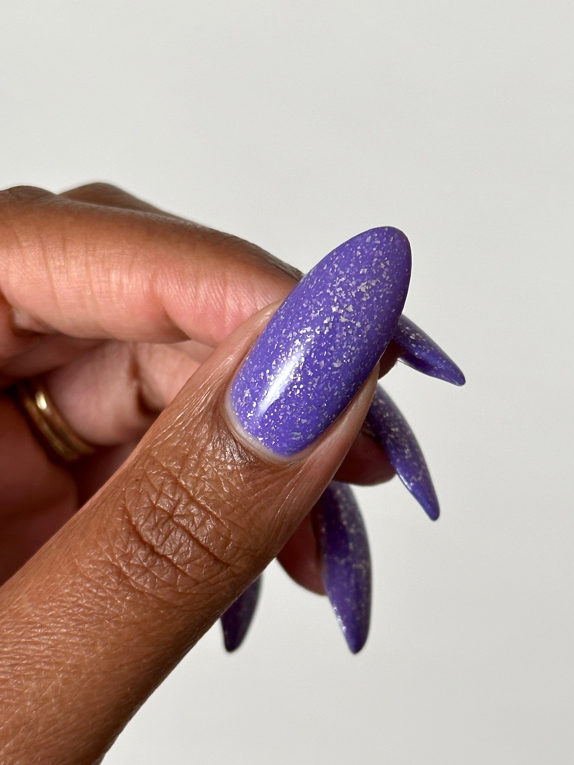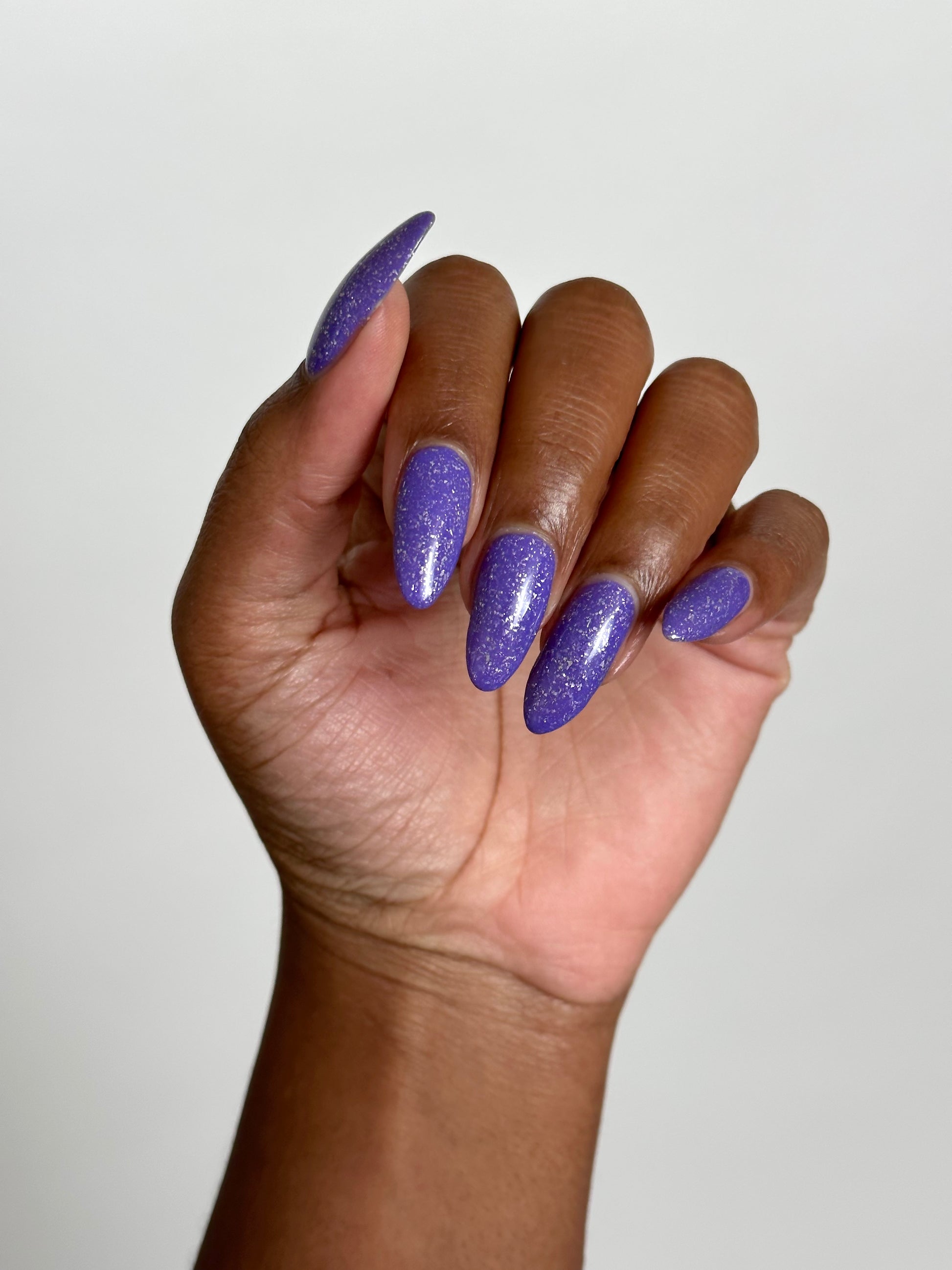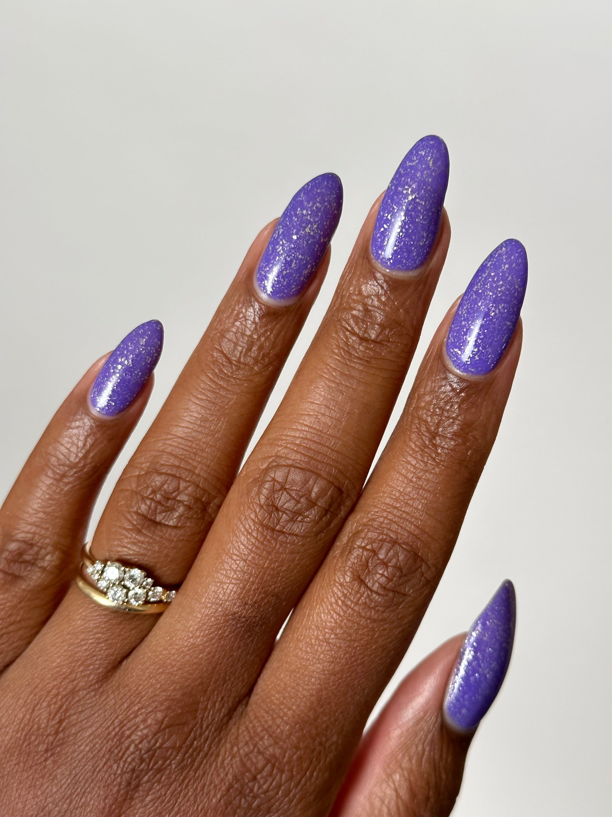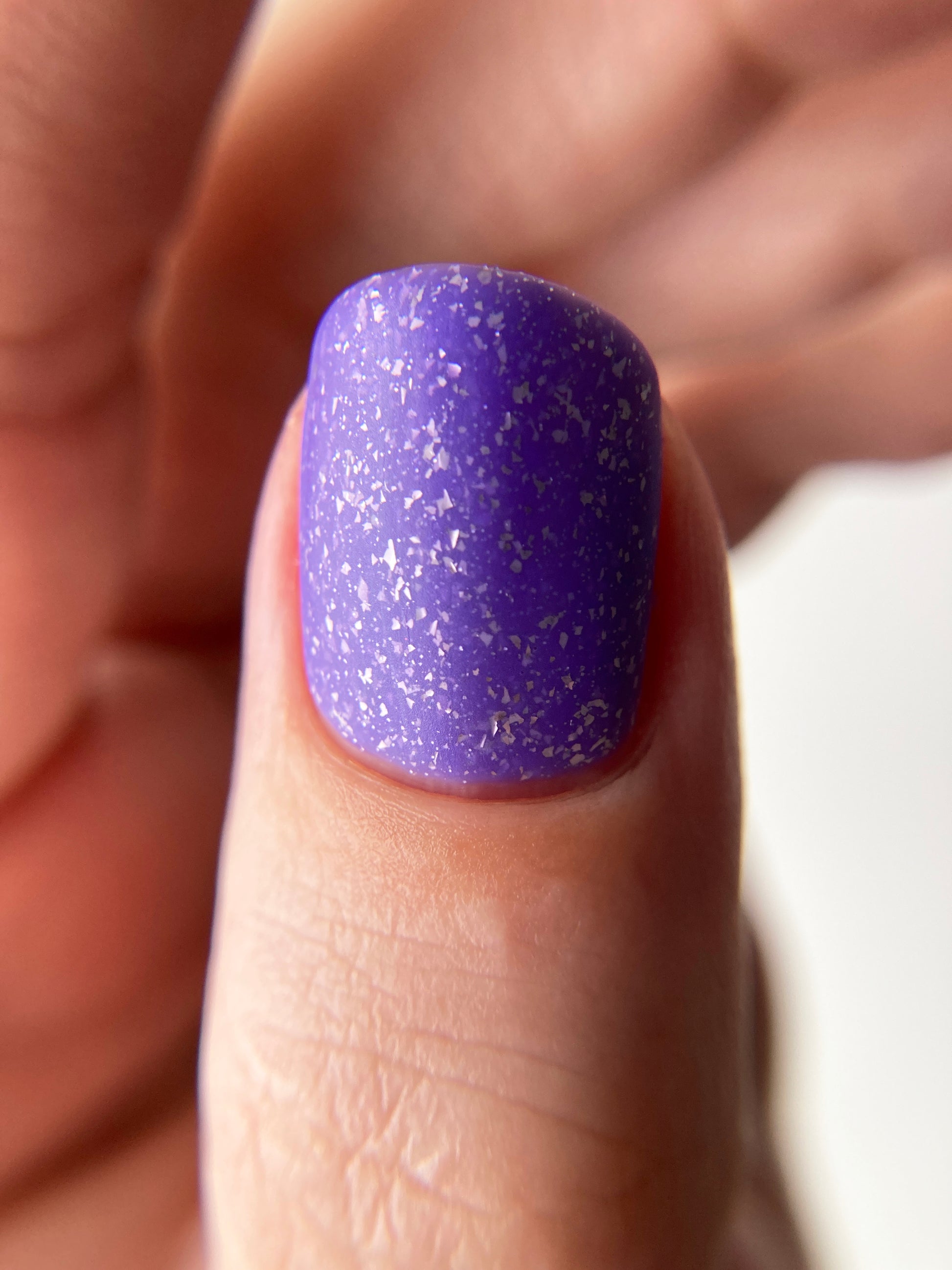 Jelly violet base filled with platinum flakies and micro silver glitter