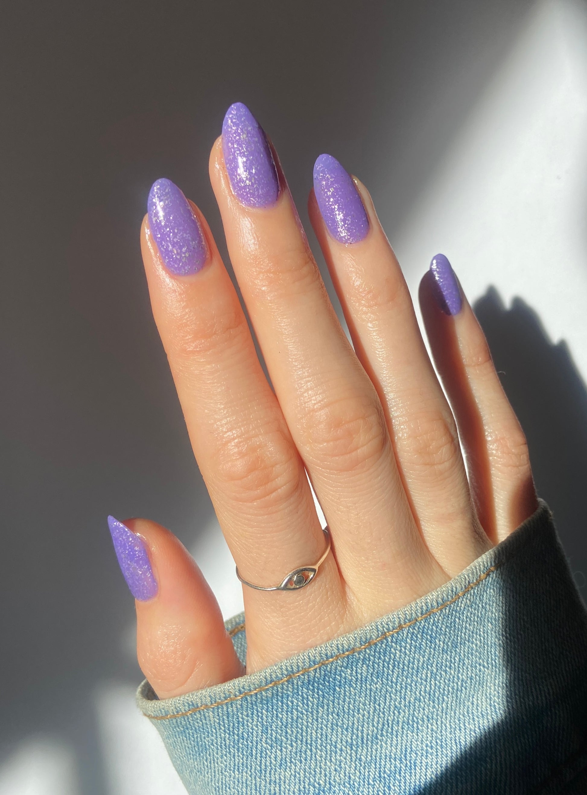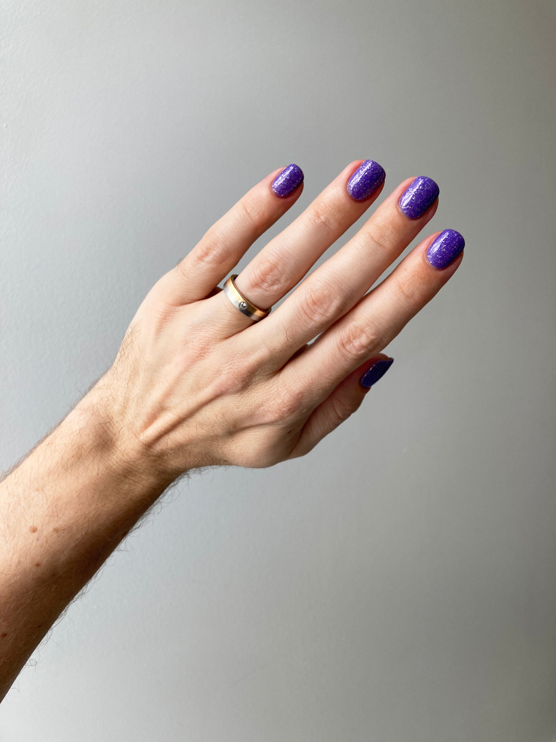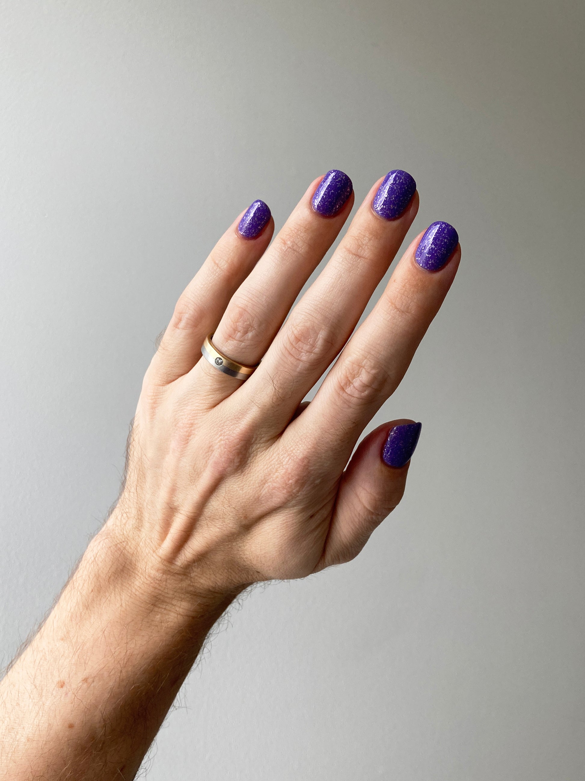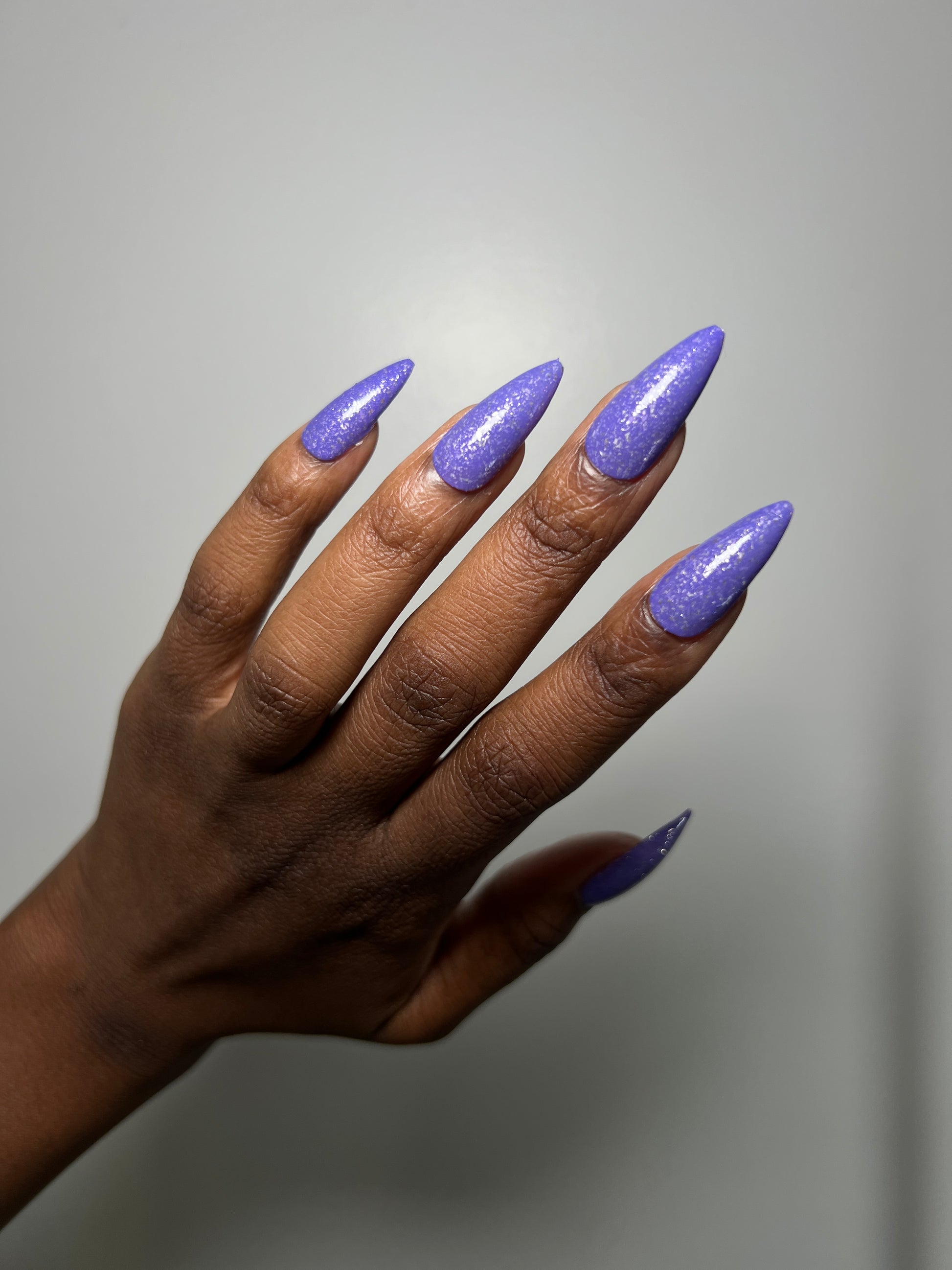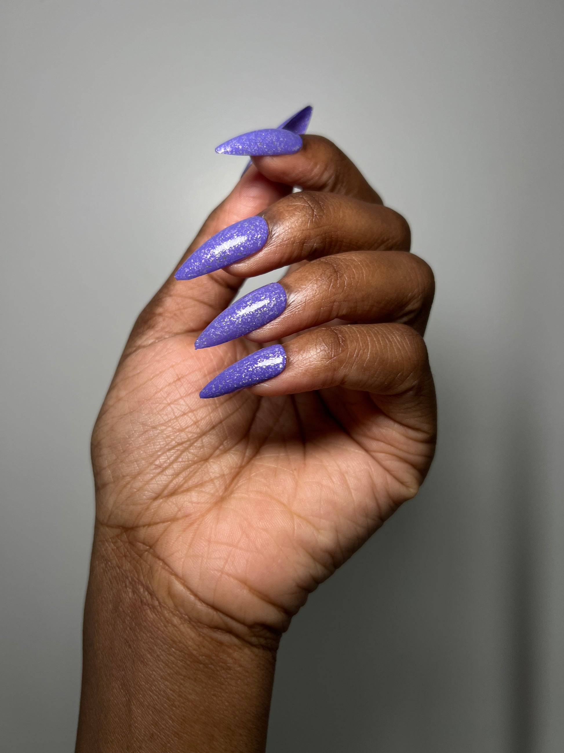 Jelly violet base filled with platinum flakies and micro silver glitter