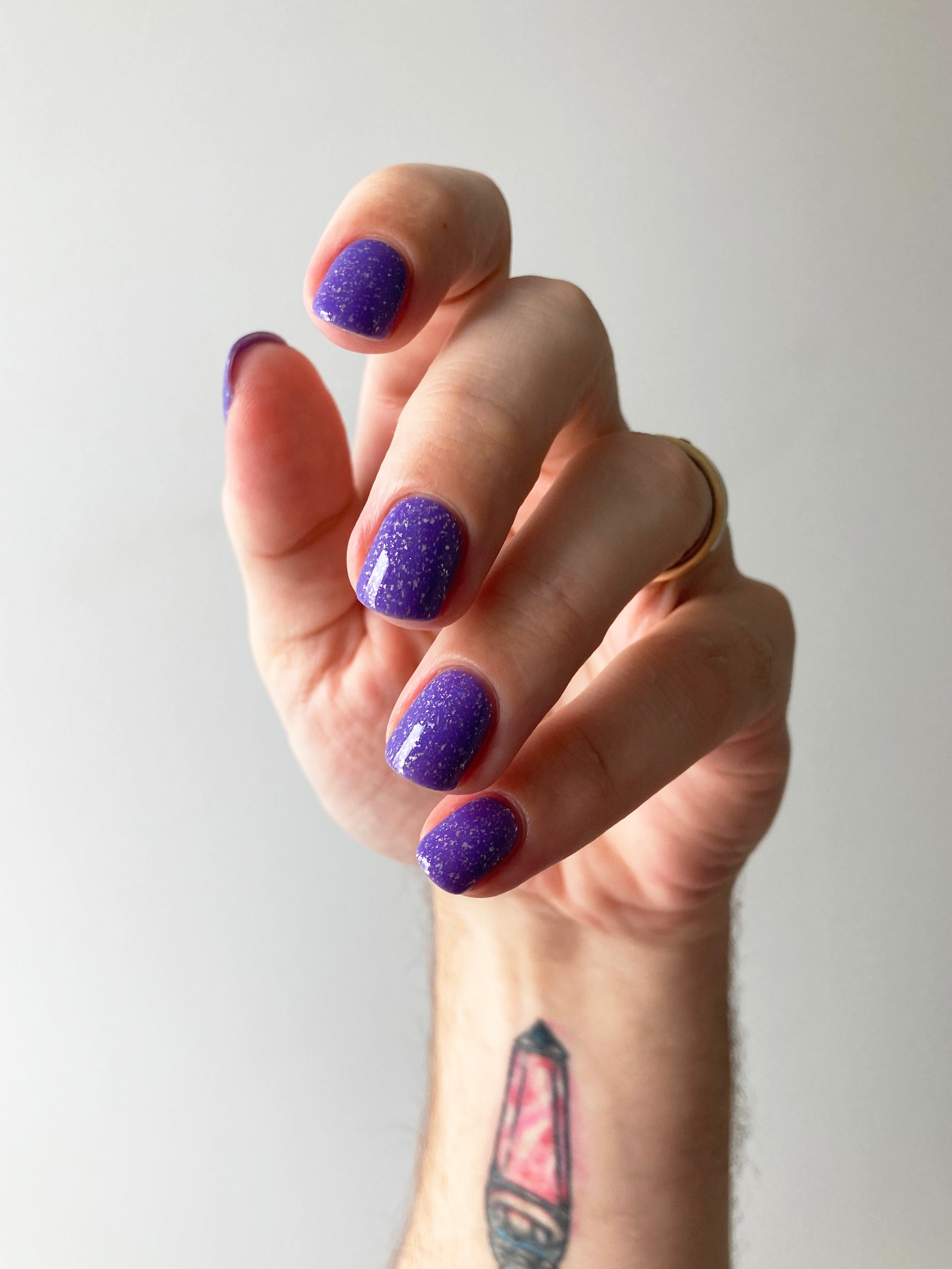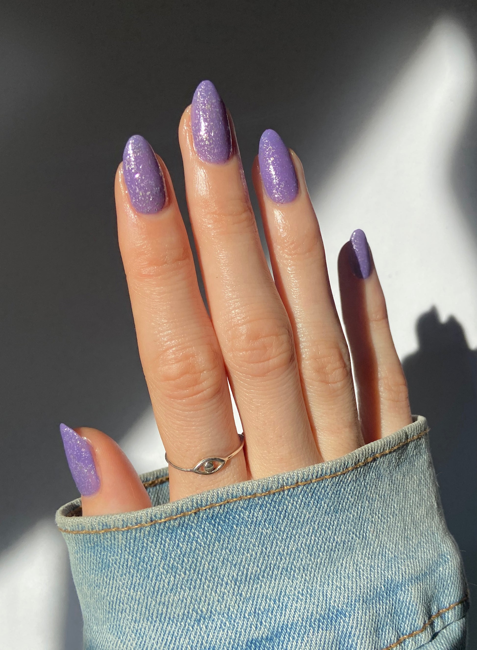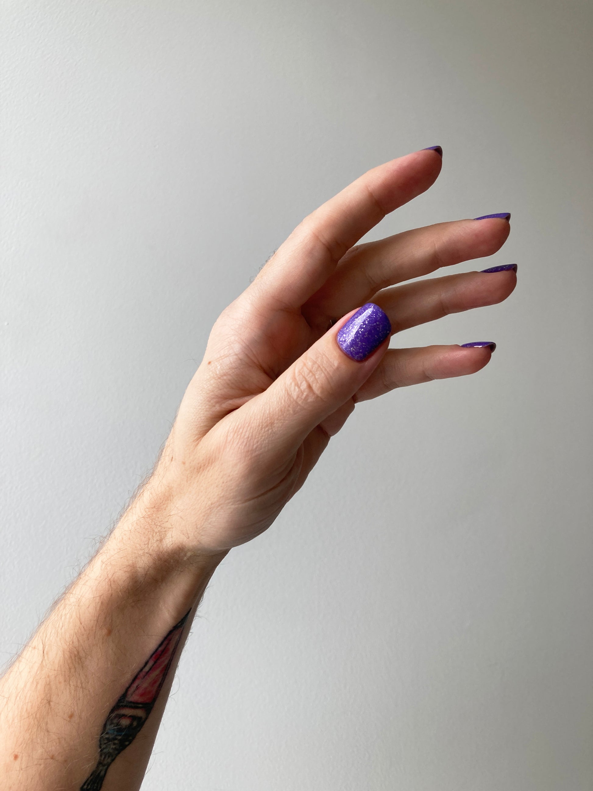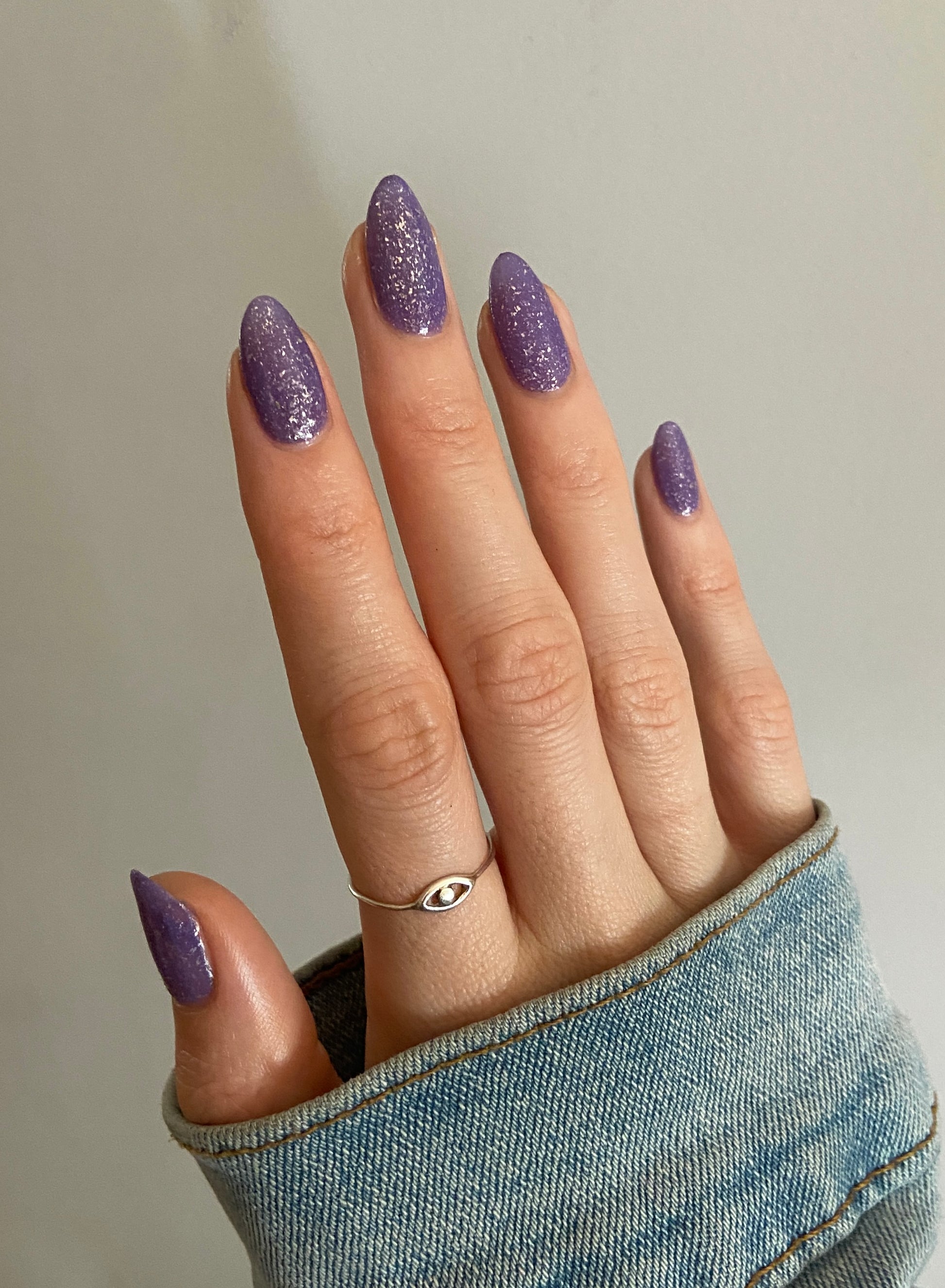 Jelly violet base filled with platinum flakies and micro silver glitter