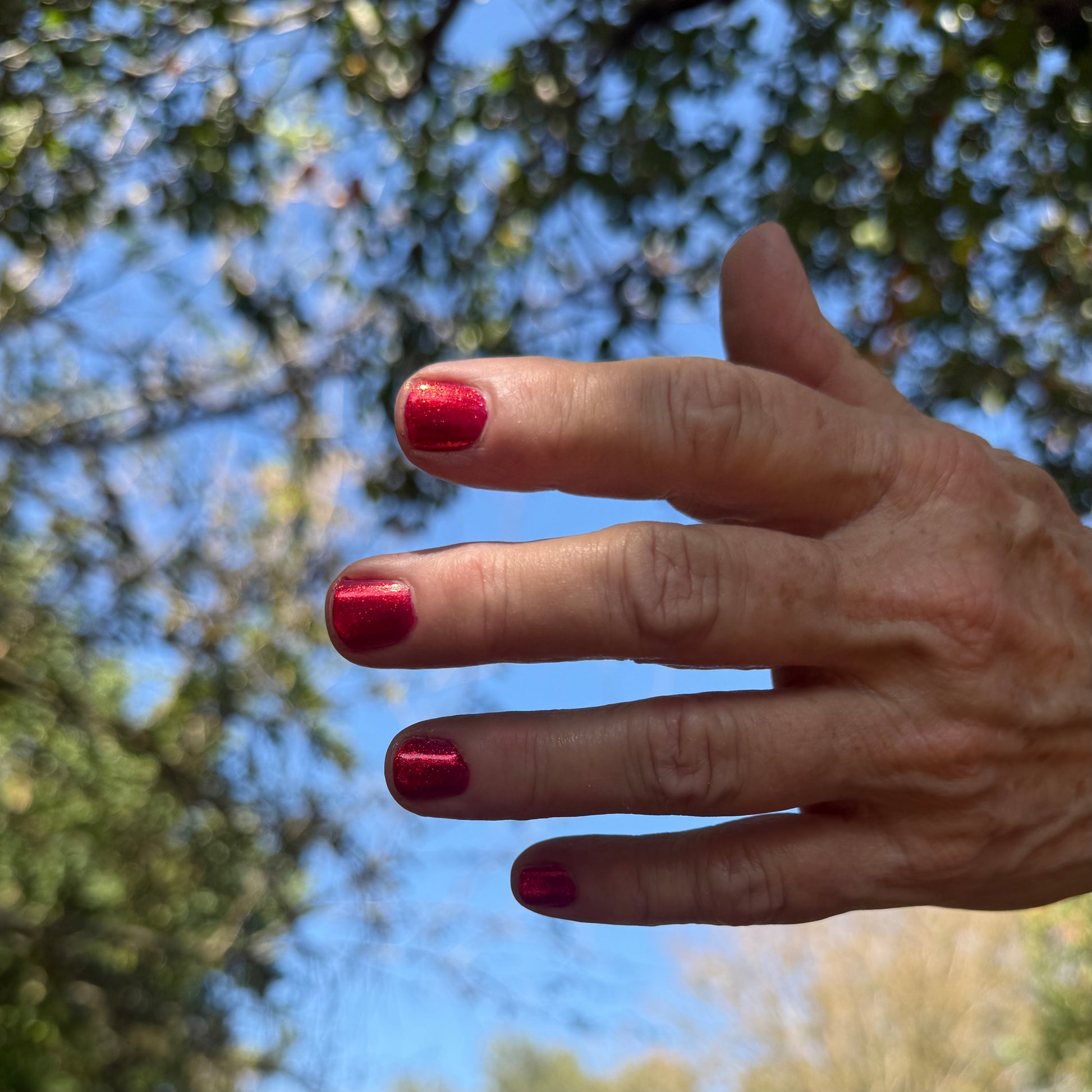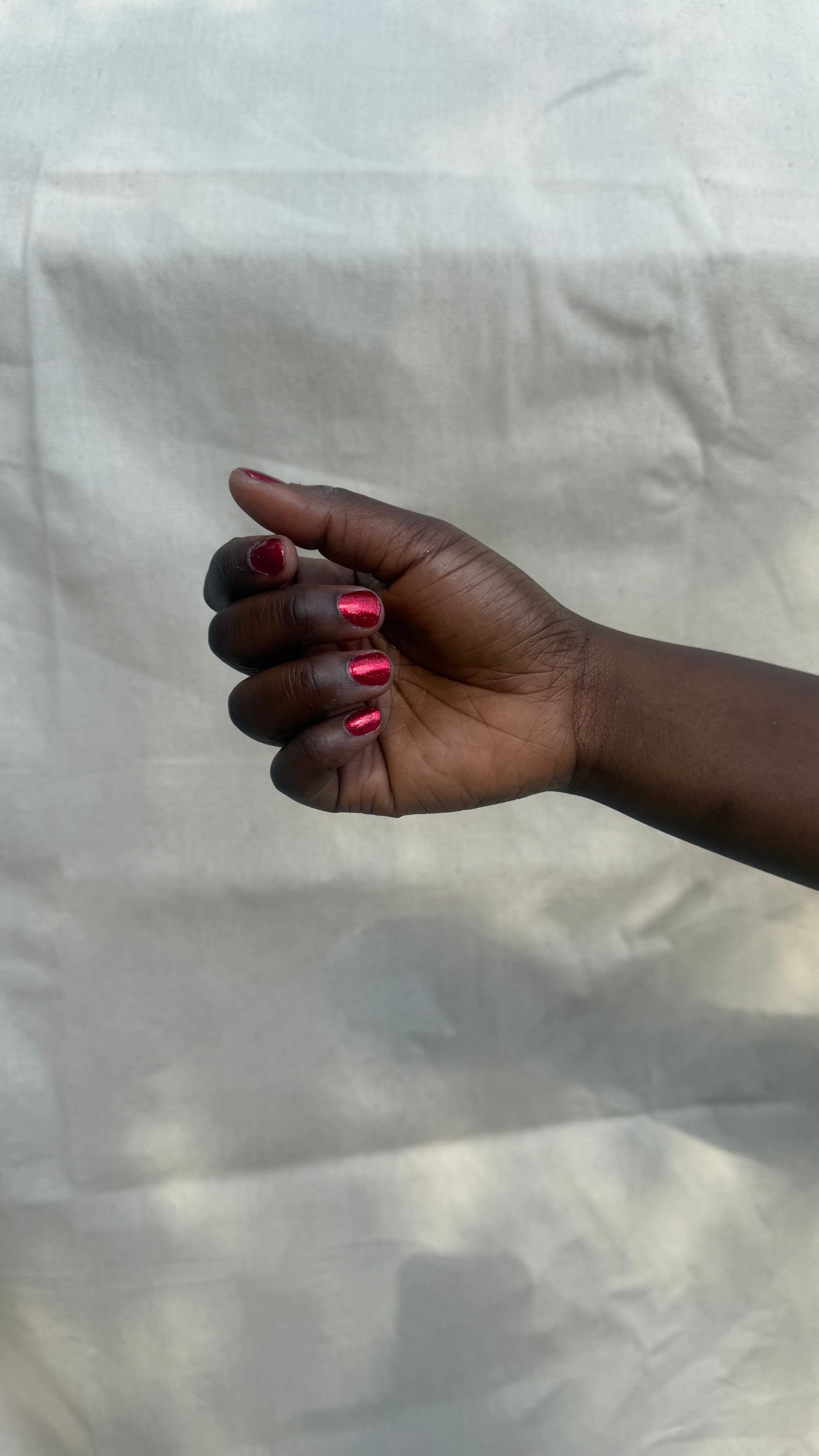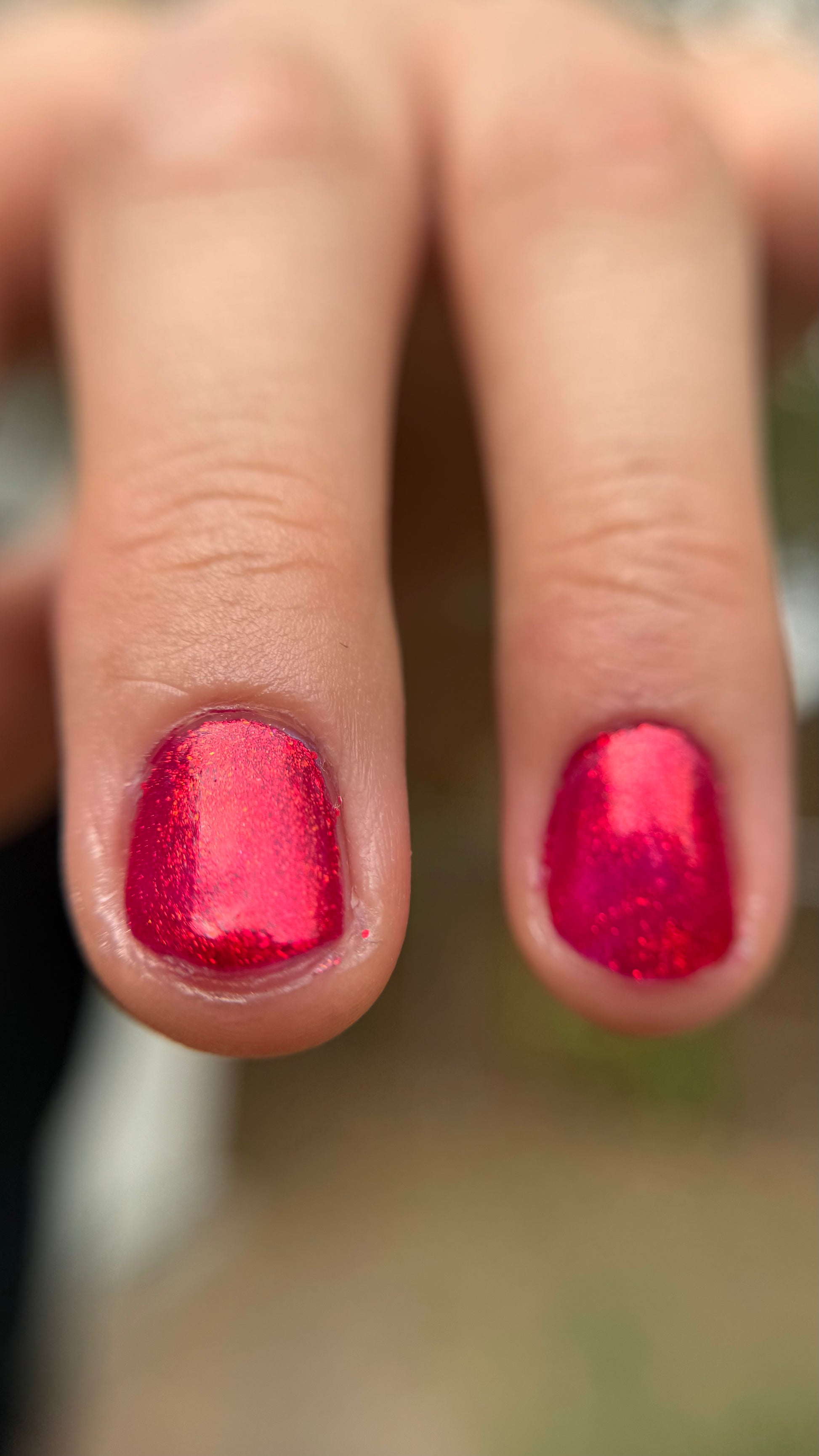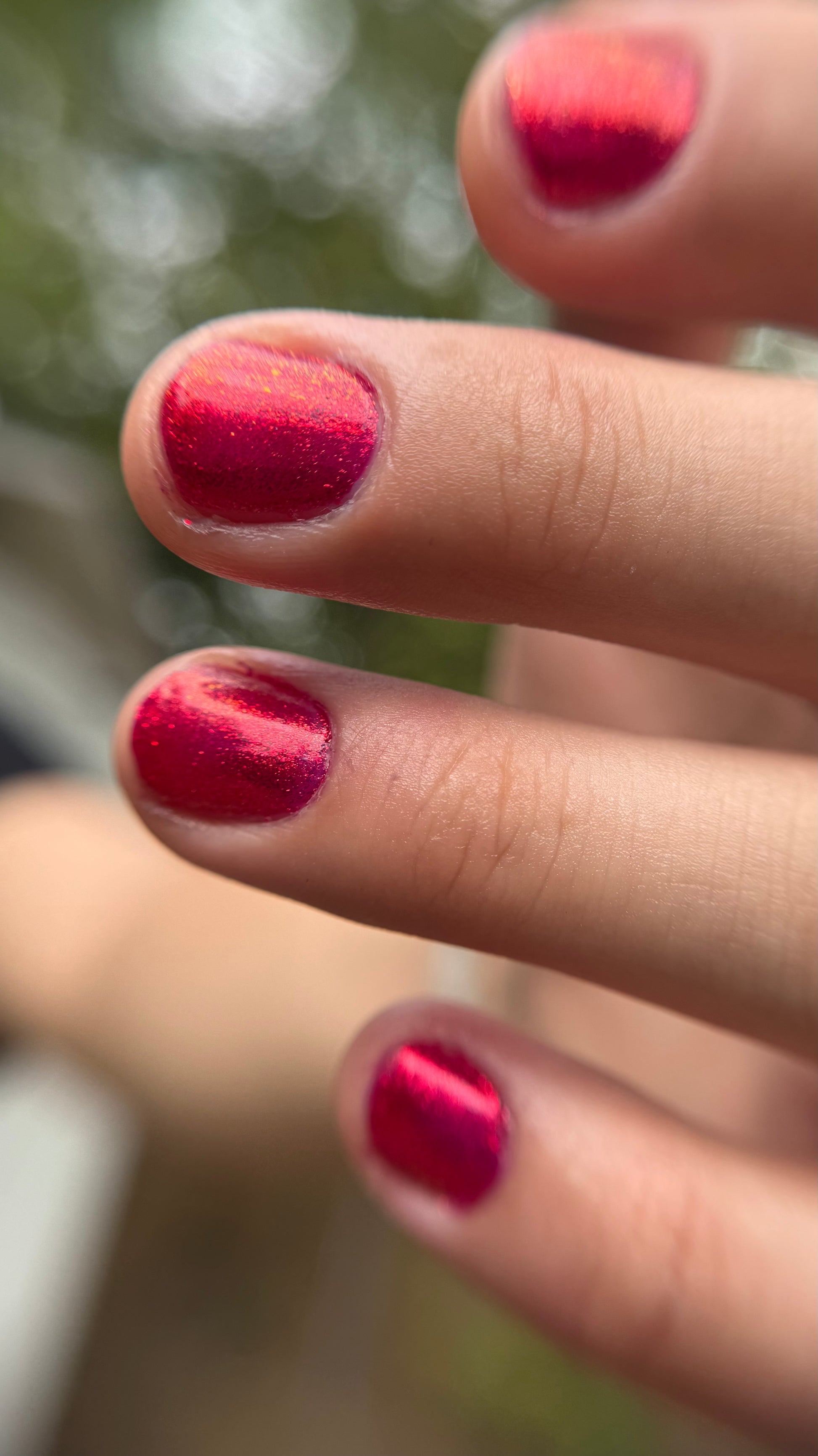 High-impact molten garnet metallic red. Easy coverage and build-up, this dense micro-shimmer gives a foil-like reflective red glow.
